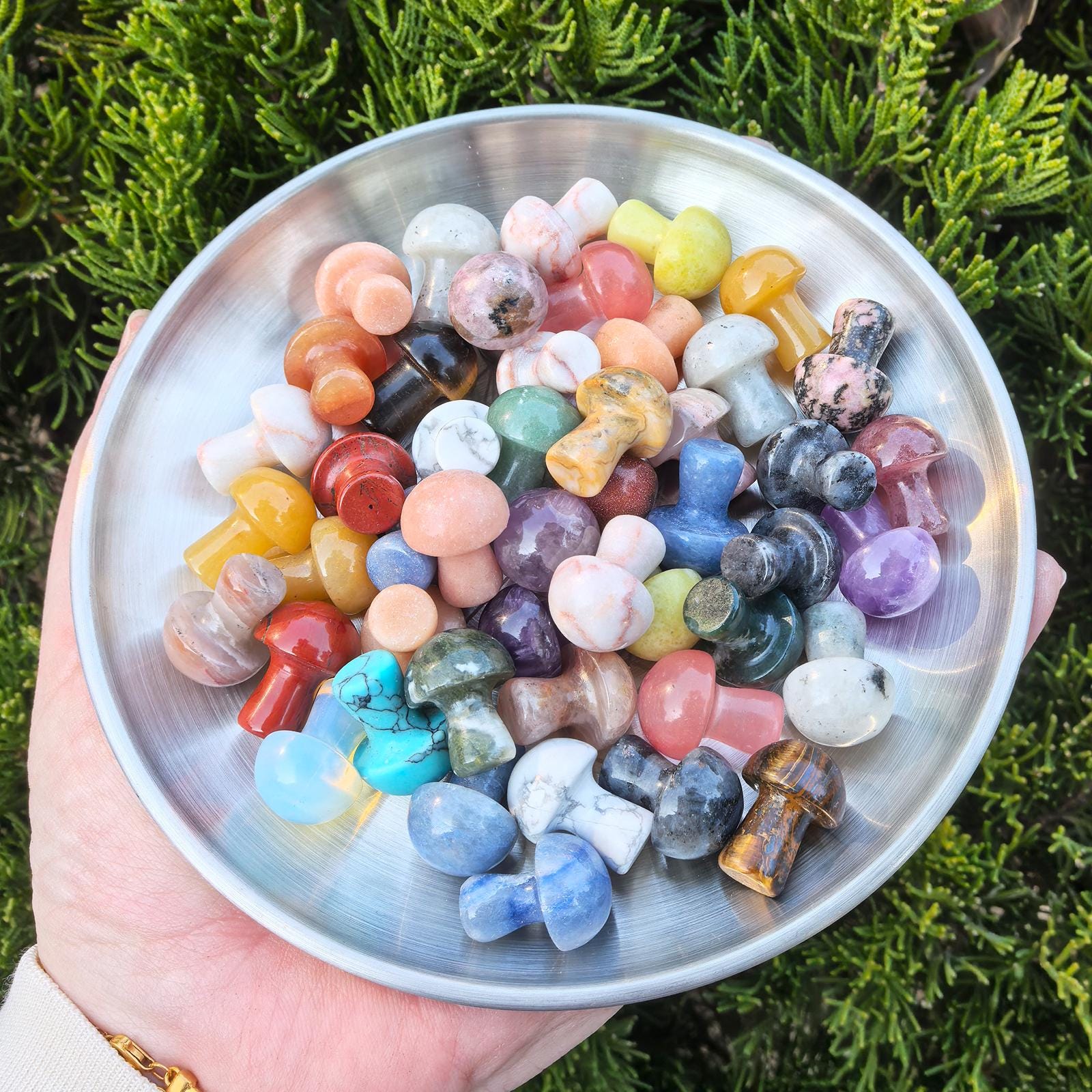 These mini mushrooms are believed to hold the energy and properties of the crystals they are made from, enhancing positive energy, calmness, and focus.
