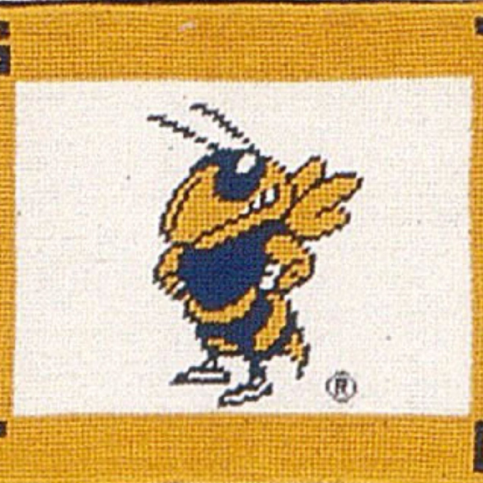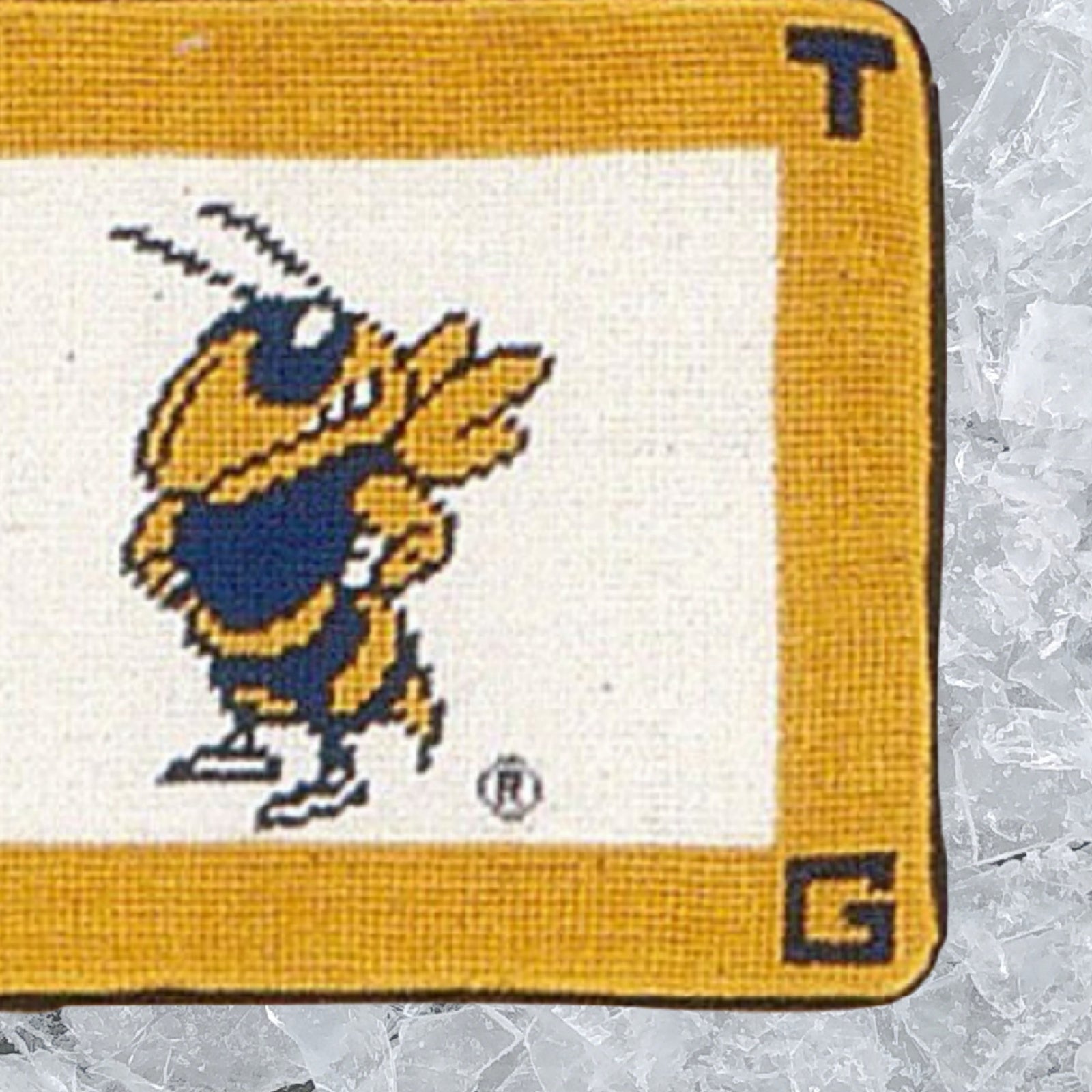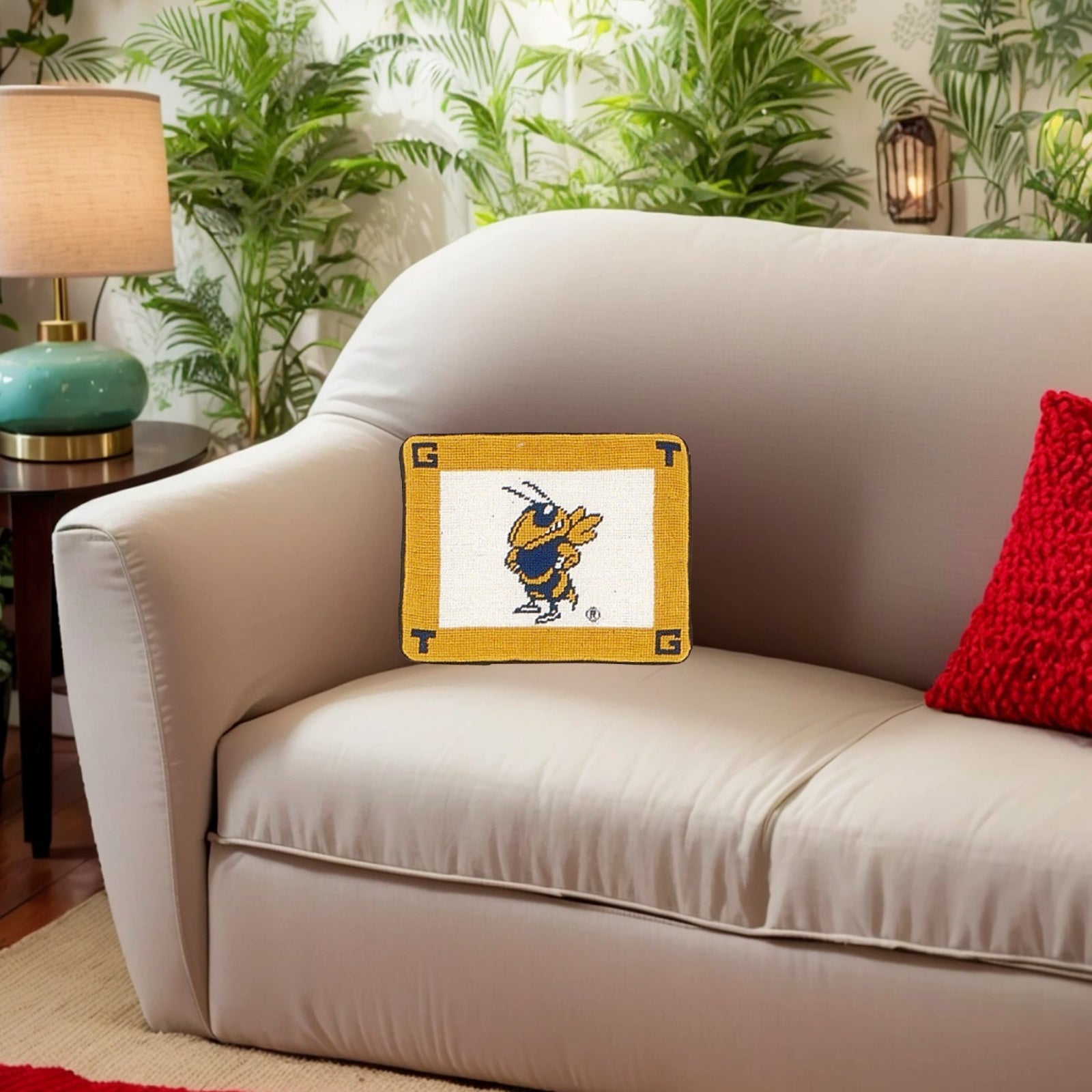 Handmade Wool Needlepoint Pillow Cover - Decorative Throw Cushion Cover - Vintage Floral Embroidery Design Georgia Institute of Technology Yellow Jackets