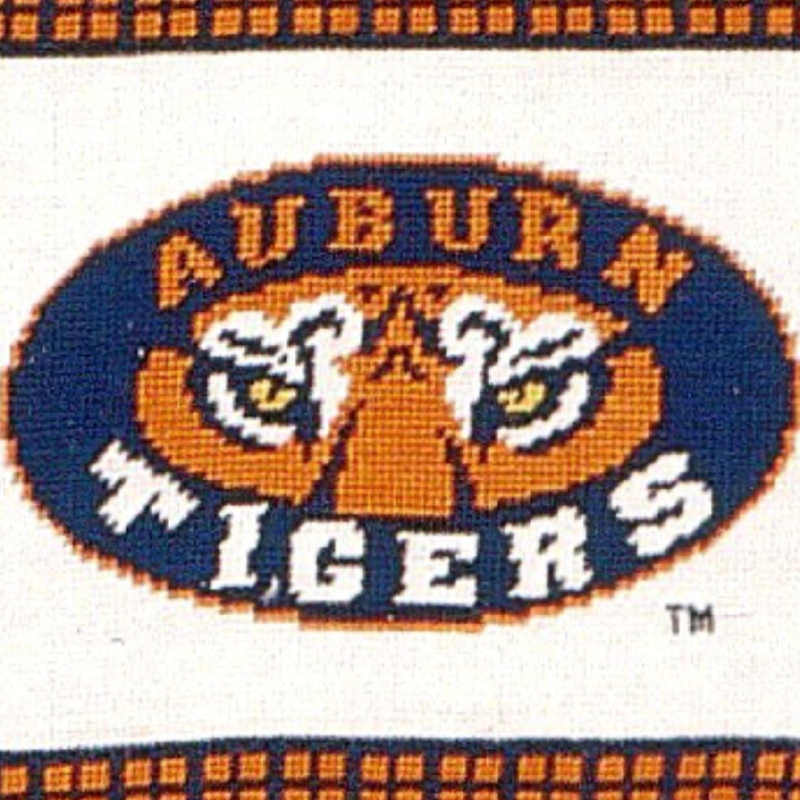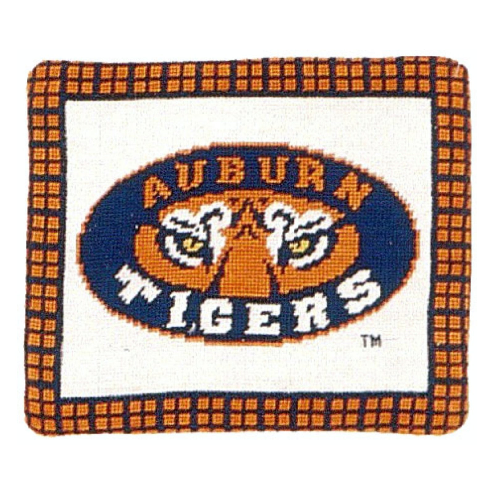 Handmade Wool Needlepoint Pillow Cover - Decorative Throw Cushion Cover - Vintage Floral Embroidery Design Auburn University of AL, Auburn Tiger