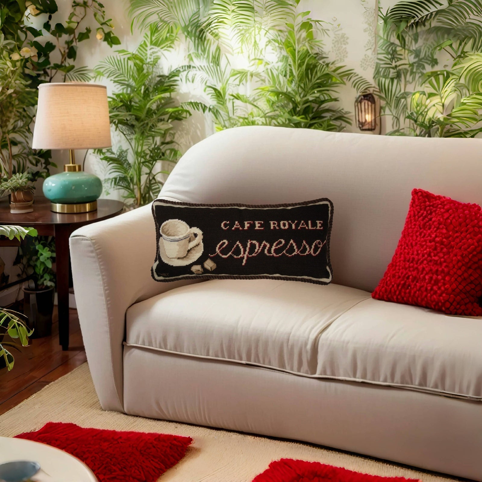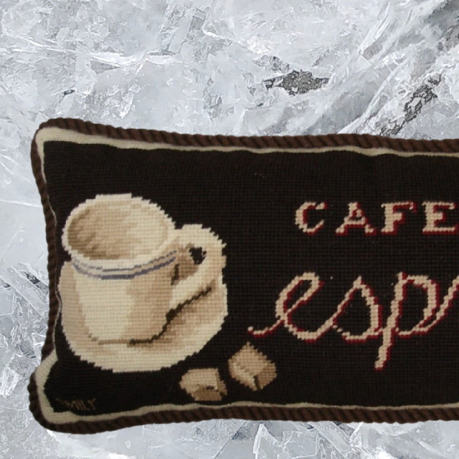Handmade Wool Needlepoint Pillow Cover - Decorative Throw Cushion Cover - Vintage Floral Embroidery Design Emily Adams DesignSavoy Cafe with cording