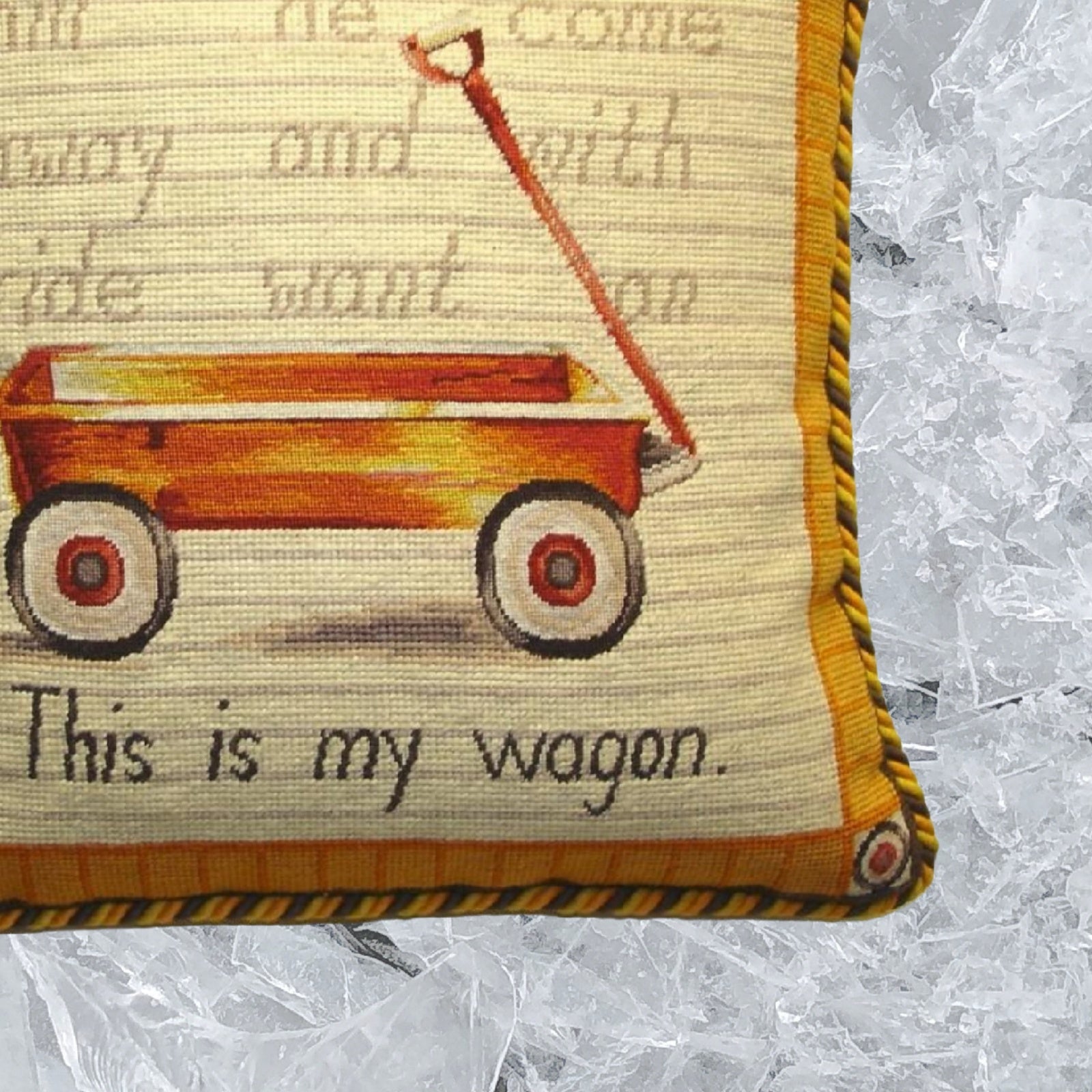 Handmade Wool Needlepoint Pillow Cover - Decorative Throw Cushion Cover - Vintage Floral Embroidery Design Wagon Lauren Hamilton Design