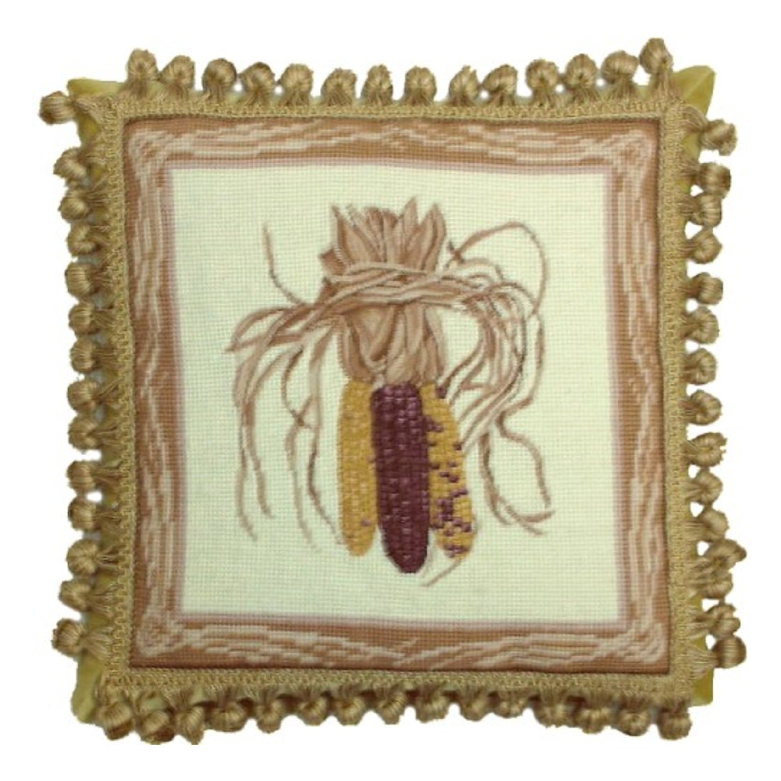 Handmade Wool Needlepoint Pillow Cover - Decorative Throw Cushion Cover - Vintage Floral Embroidery Design 3 color corns with tassel