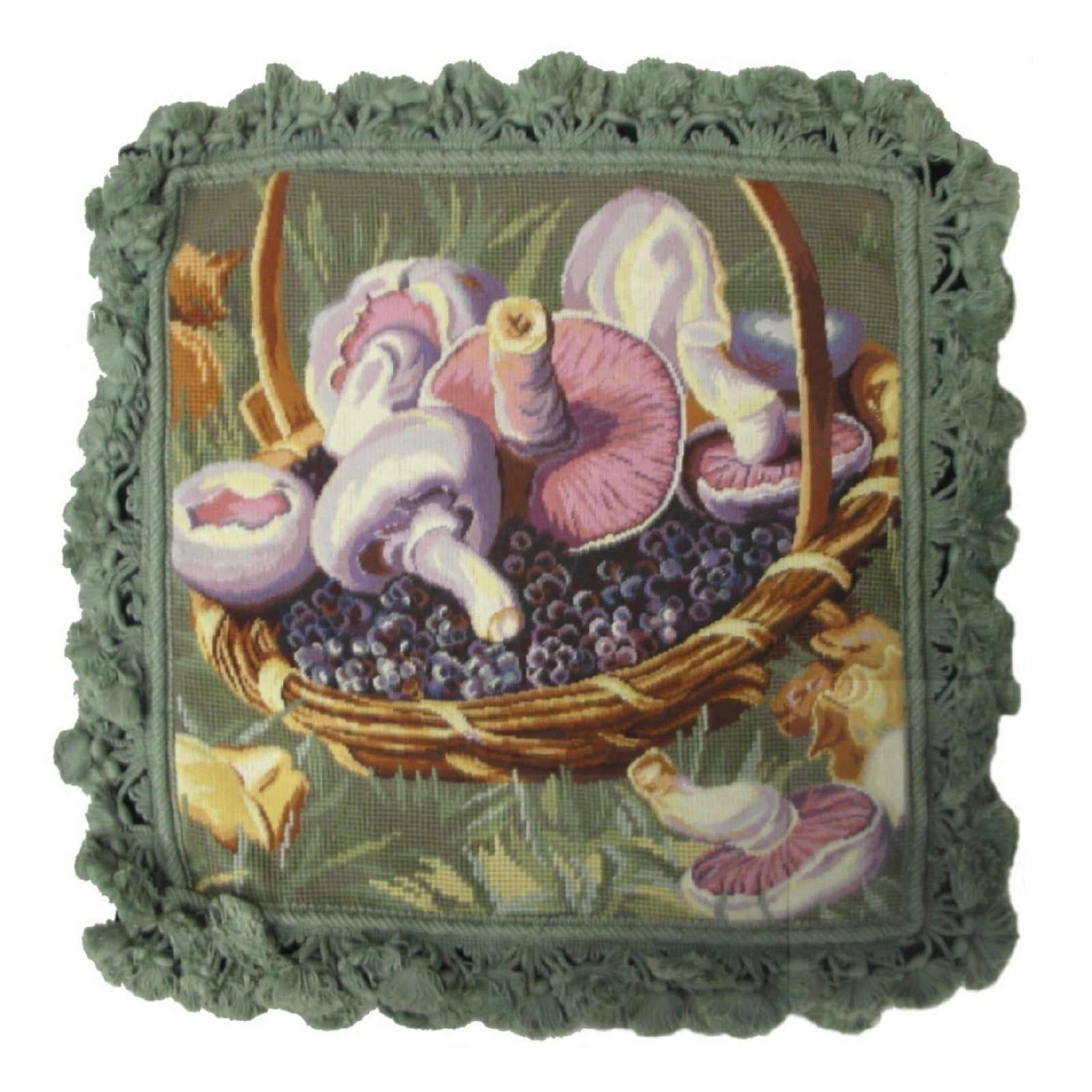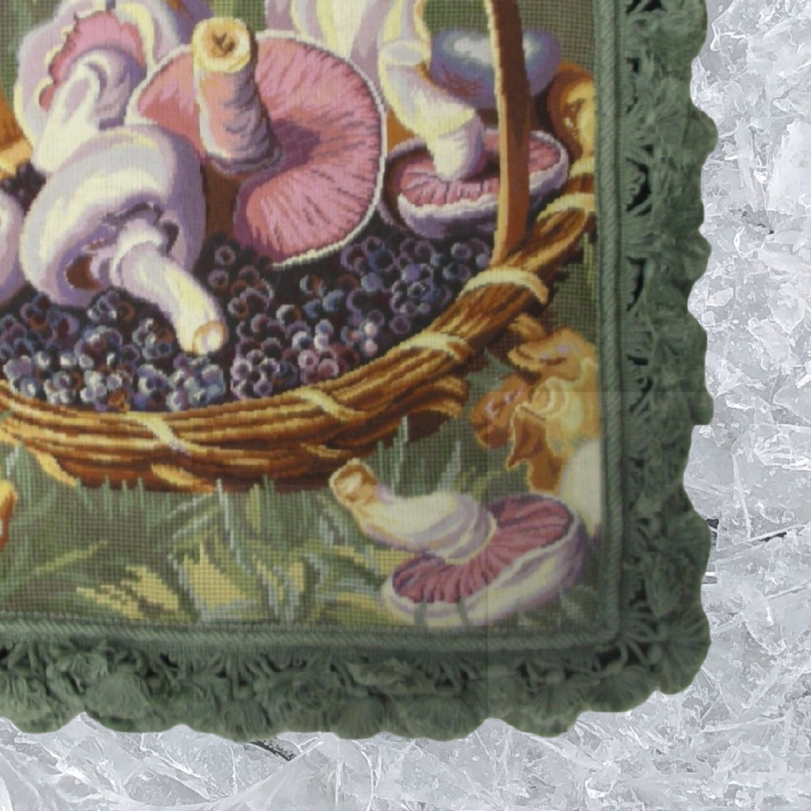 Using natural vegetable-dyed, finest 100% Australia and New Zealand wool threads on this pillow, 100% cotton velvet backing, each item is a unique artistic achievement. This pillow is hand-made by the cottage industry.