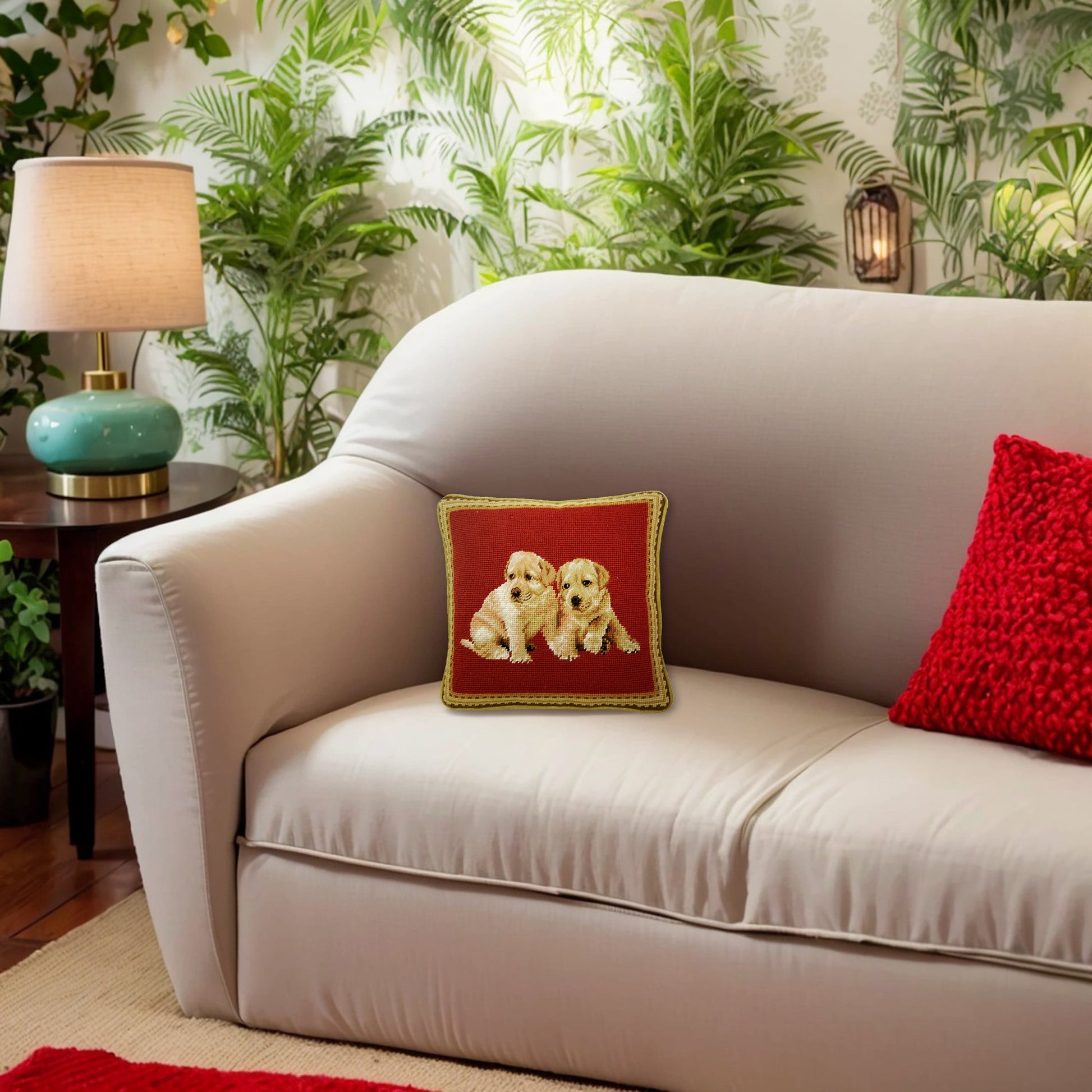 Using natural vegetable-dyed, finest 100% Australia and New Zealand wool threads on this pillow, 100% cotton velvet backing, each item is a unique artistic achievement. This pillow is hand-made by the cottage industry.