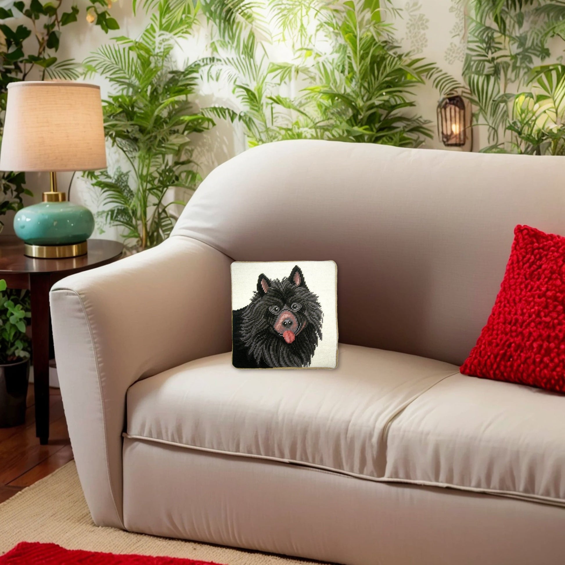 Using natural vegetable-dyed, finest 100% Australia and New Zealand wool threads on this pillow, 100% cotton velvet backing, each item is a unique artistic achievement. This pillow is hand-made by the cottage industry.