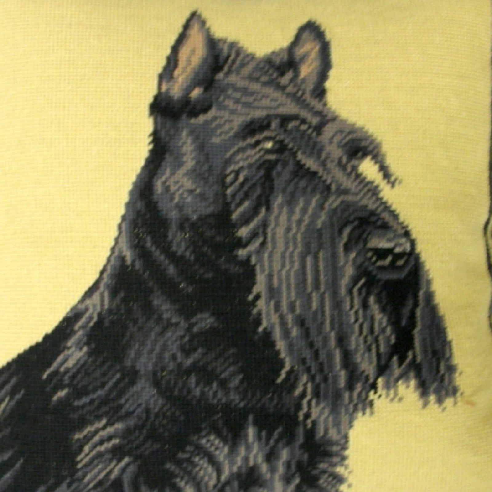 Handmade Wool Needlepoint Pillow Cover - Decorative Throw Cushion Cover - Vintage Floral Embroidery Design black Scottie with cording