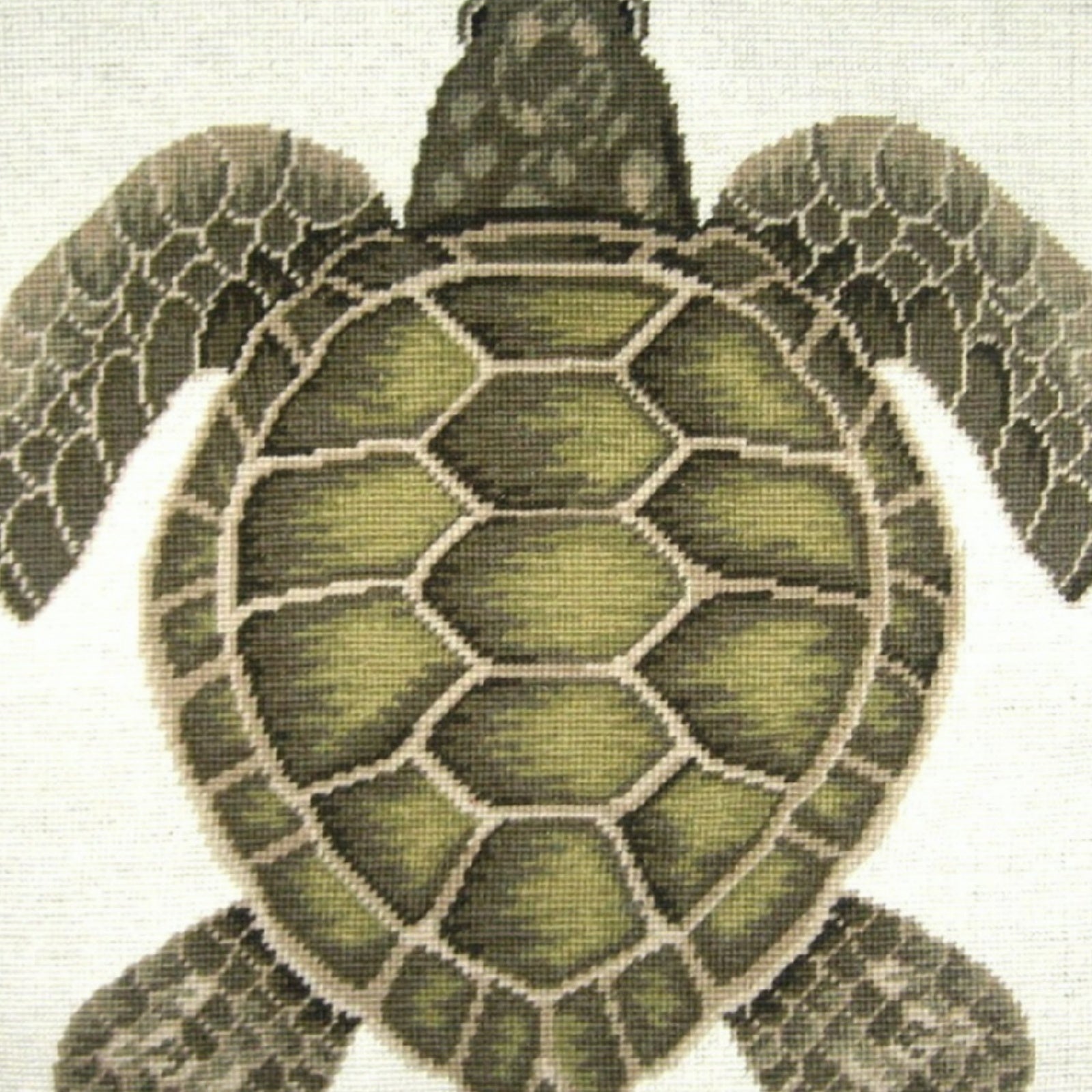 Handmade Wool Needlepoint Pillow Cover - Decorative Throw Cushion Cover - Vintage Floral Embroidery Design green turtle with cording