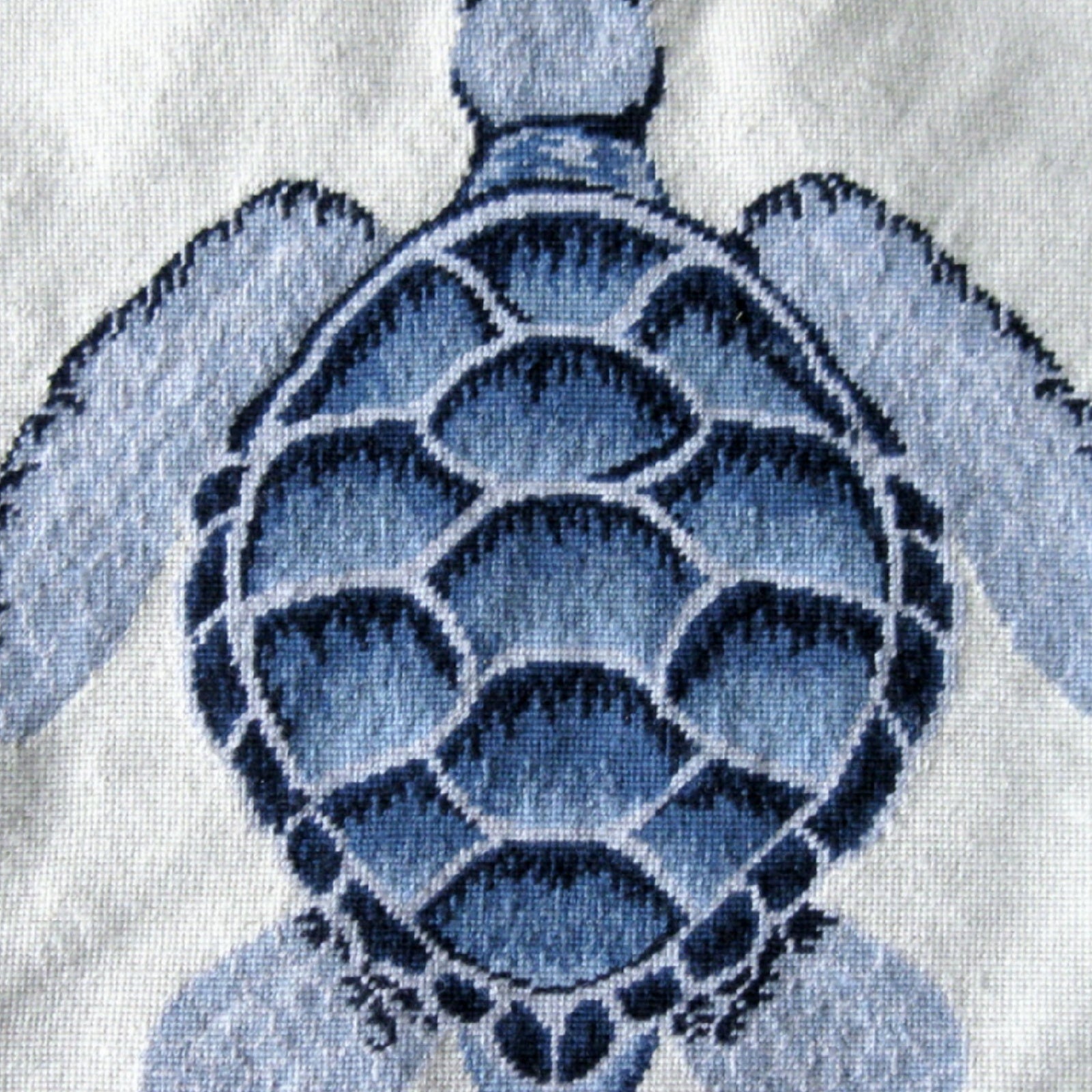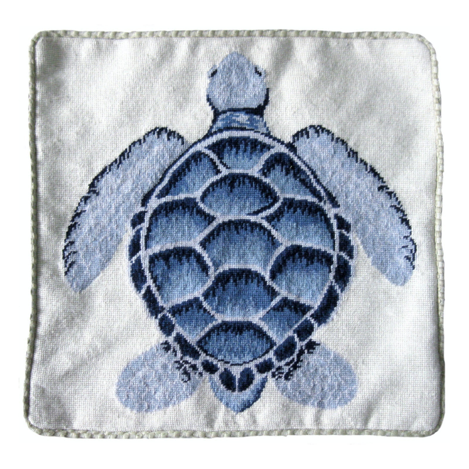 Handmade Wool Needlepoint Pillow Cover - Decorative Throw Cushion Cover - Vintage Floral Embroidery Design light blue sea turtle with cording