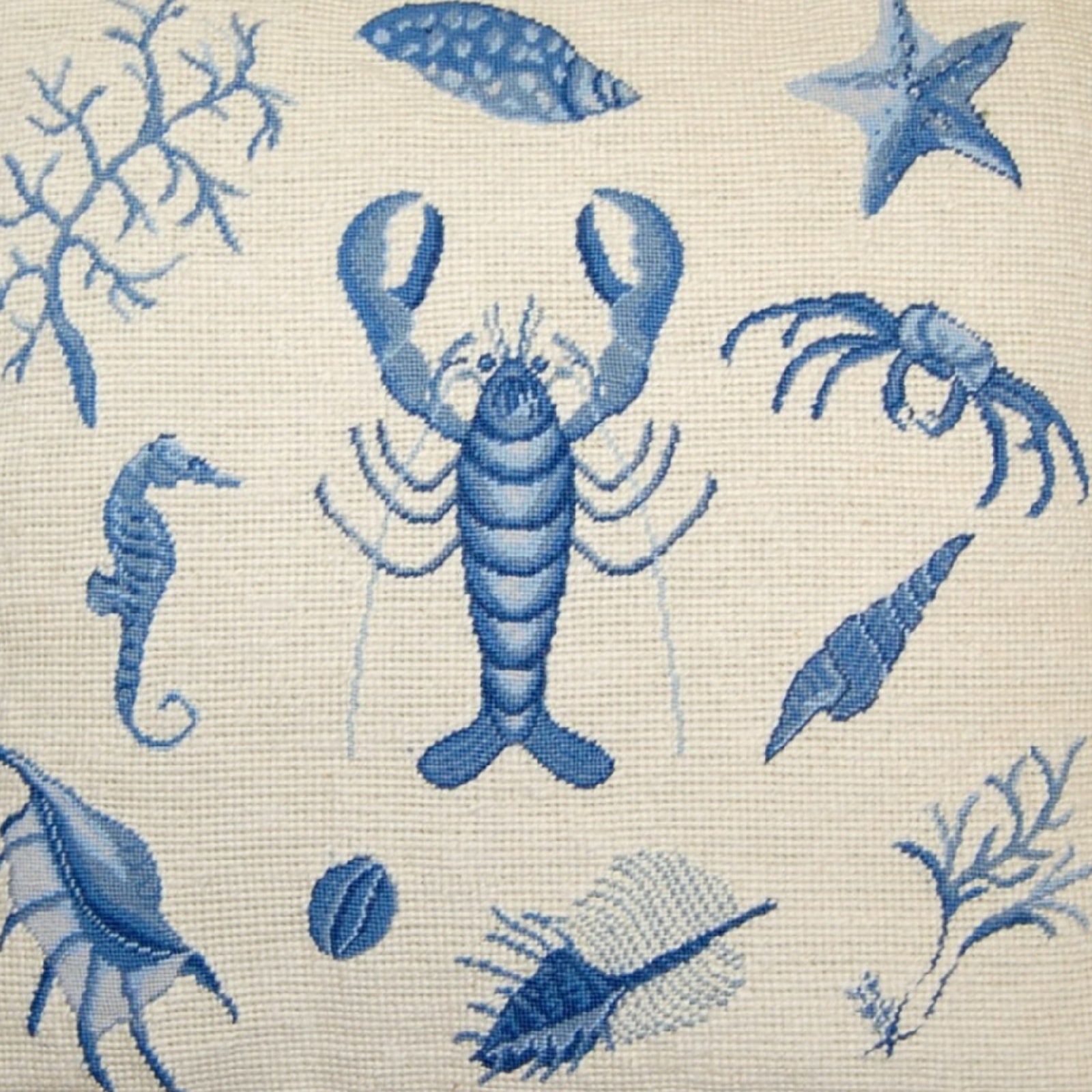 Handmade Wool Needlepoint Pillow Cover - Decorative Throw Cushion Cover - Vintage Floral Embroidery Design Fienst blue robster with tassels