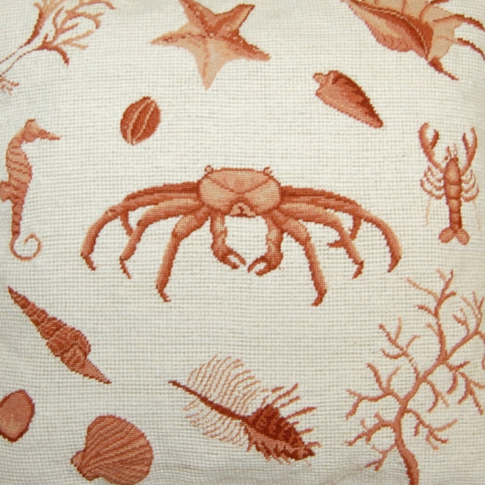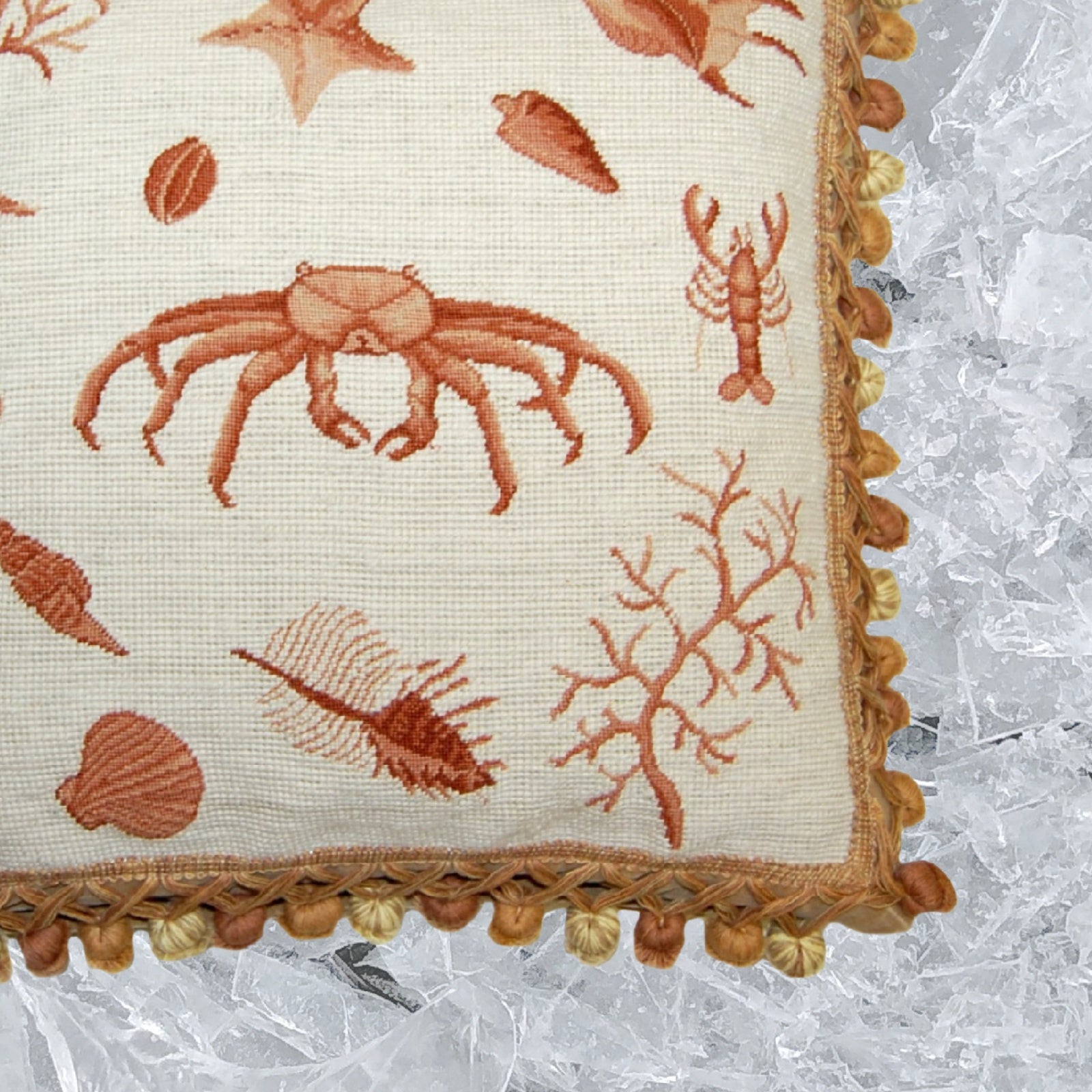 Handmade Wool Needlepoint Pillow Cover - Decorative Throw Cushion Cover - Vintage Floral Embroidery Design Fienst brown crab with tassels
