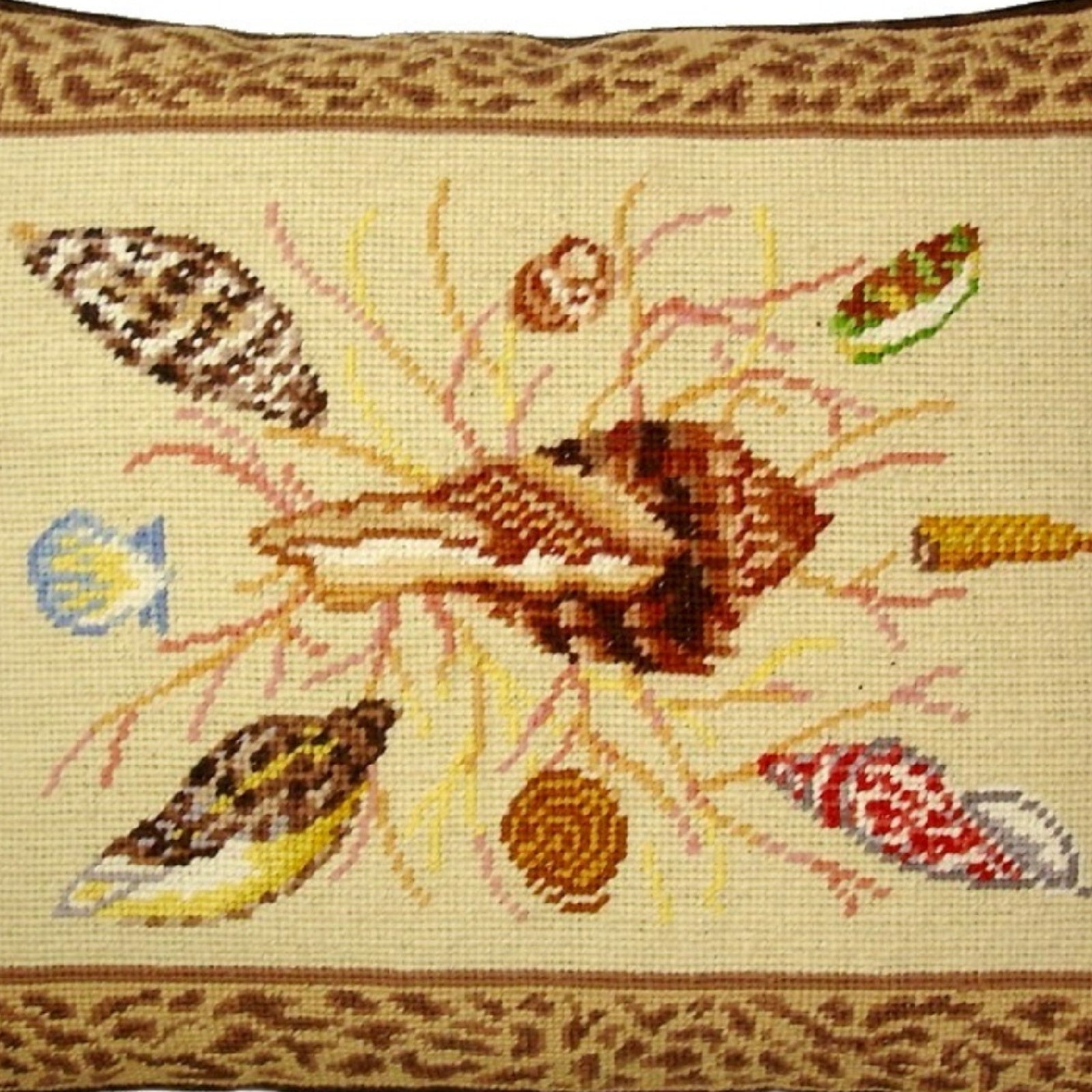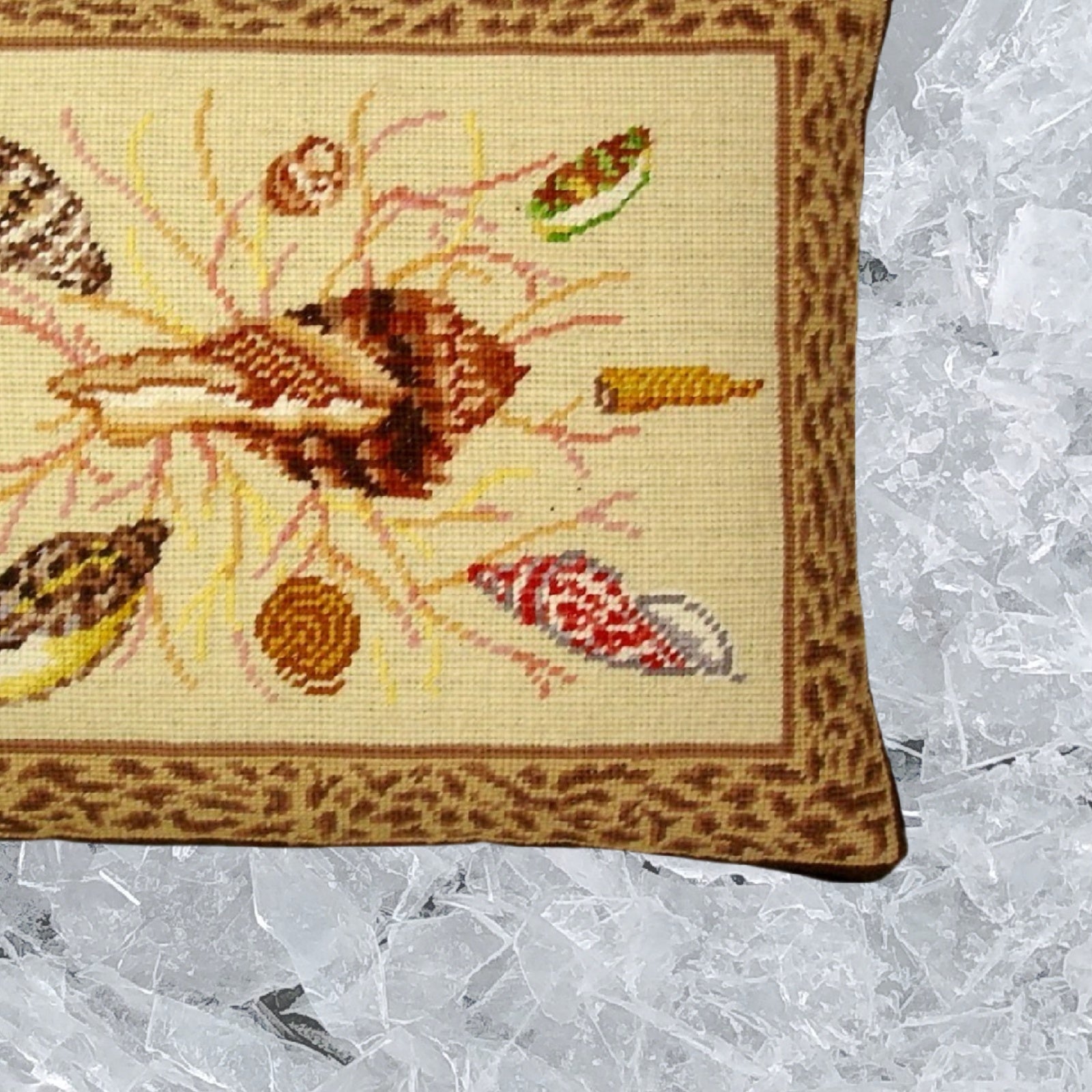 Handmade Wool Needlepoint Pillow Cover - Decorative Throw Cushion Cover - Vintage Floral Embroidery Design dark shell center animal print frame