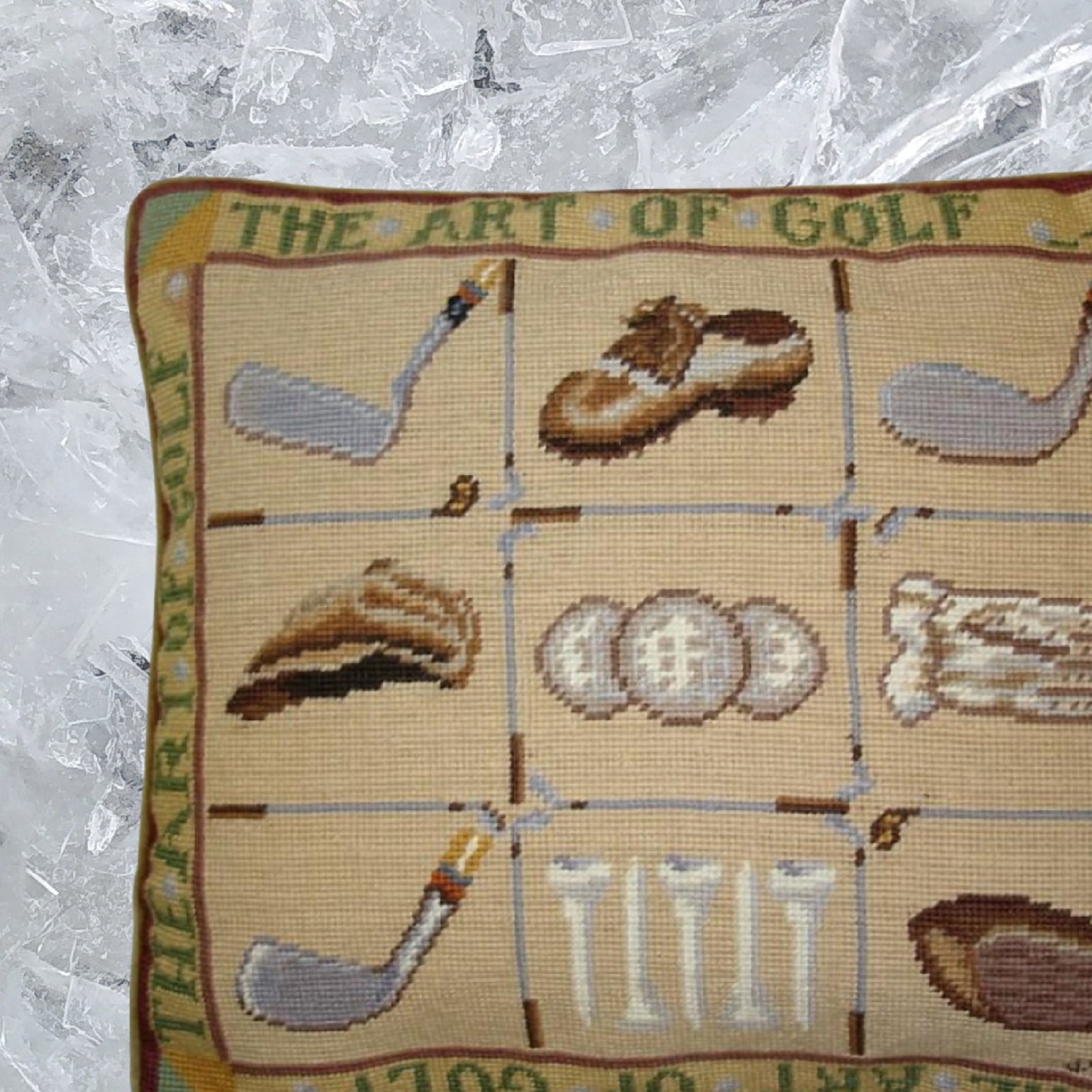 Handmade Wool Needlepoint Pillow Cover - Decorative Throw Cushion Cover - Vintage Floral Embroidery Design James Wienss designThe art of golf, &