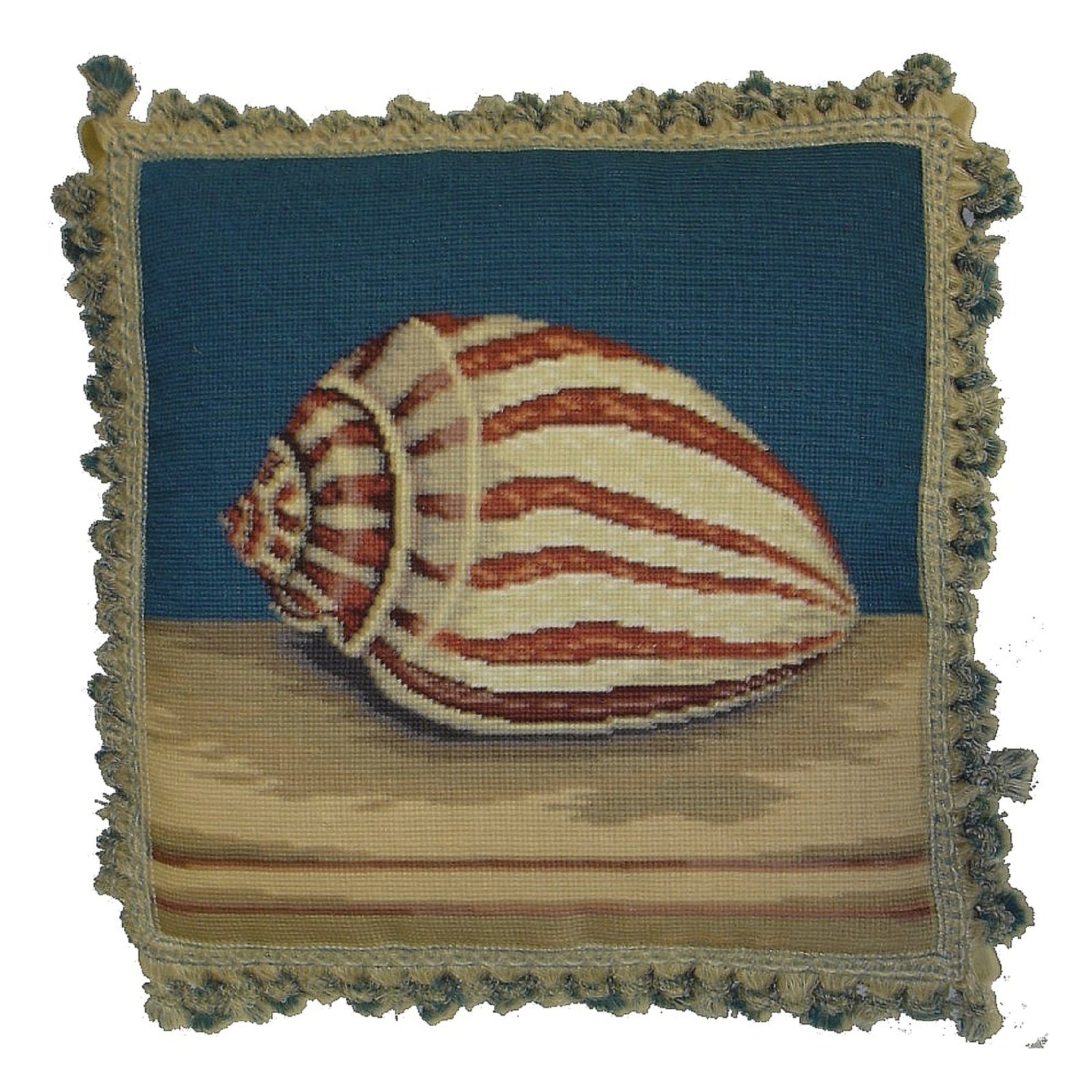 Handmade Wool Needlepoint Pillow Cover - Decorative Throw Cushion Cover - Vintage Floral Embroidery Design sea tigershell with 2 color tassel
