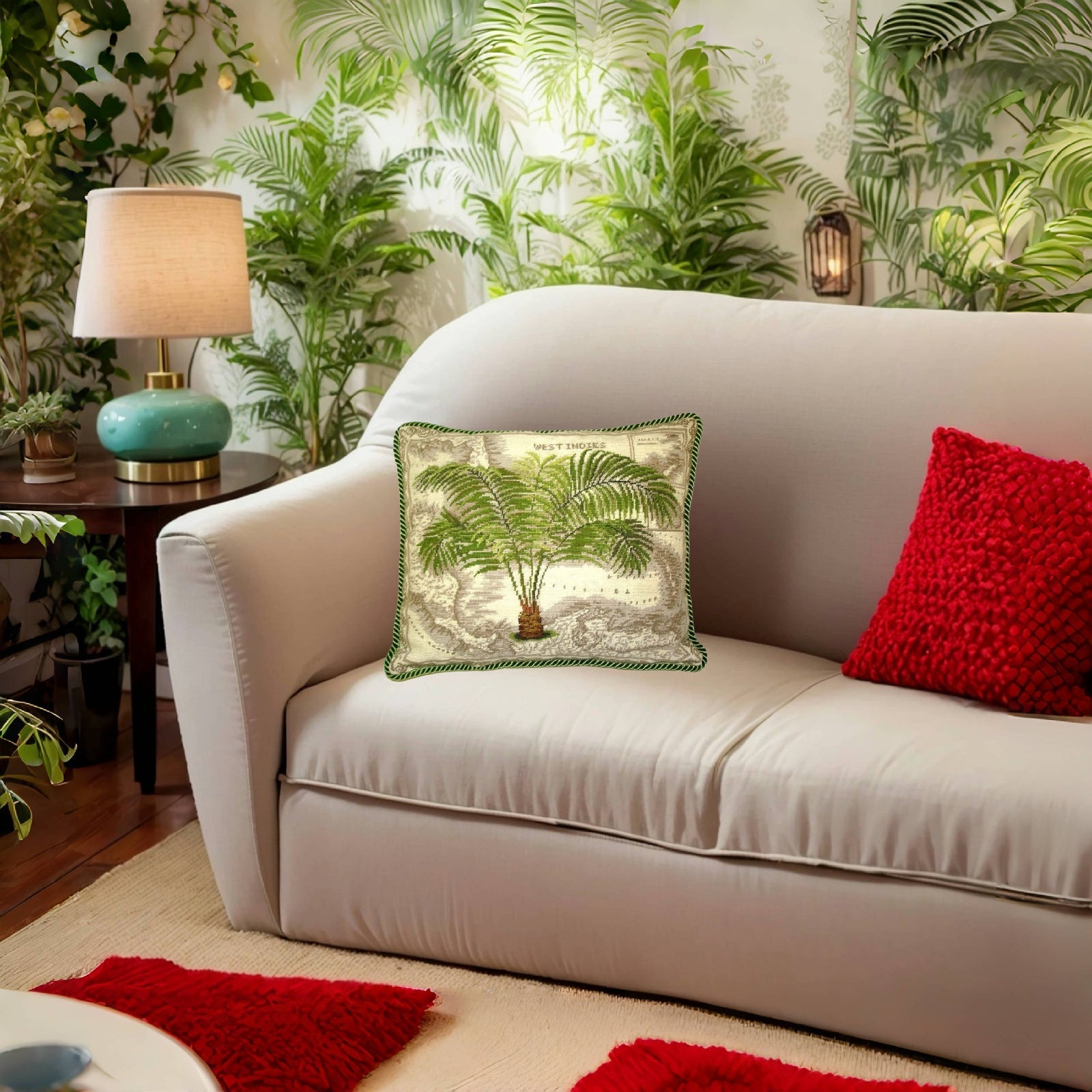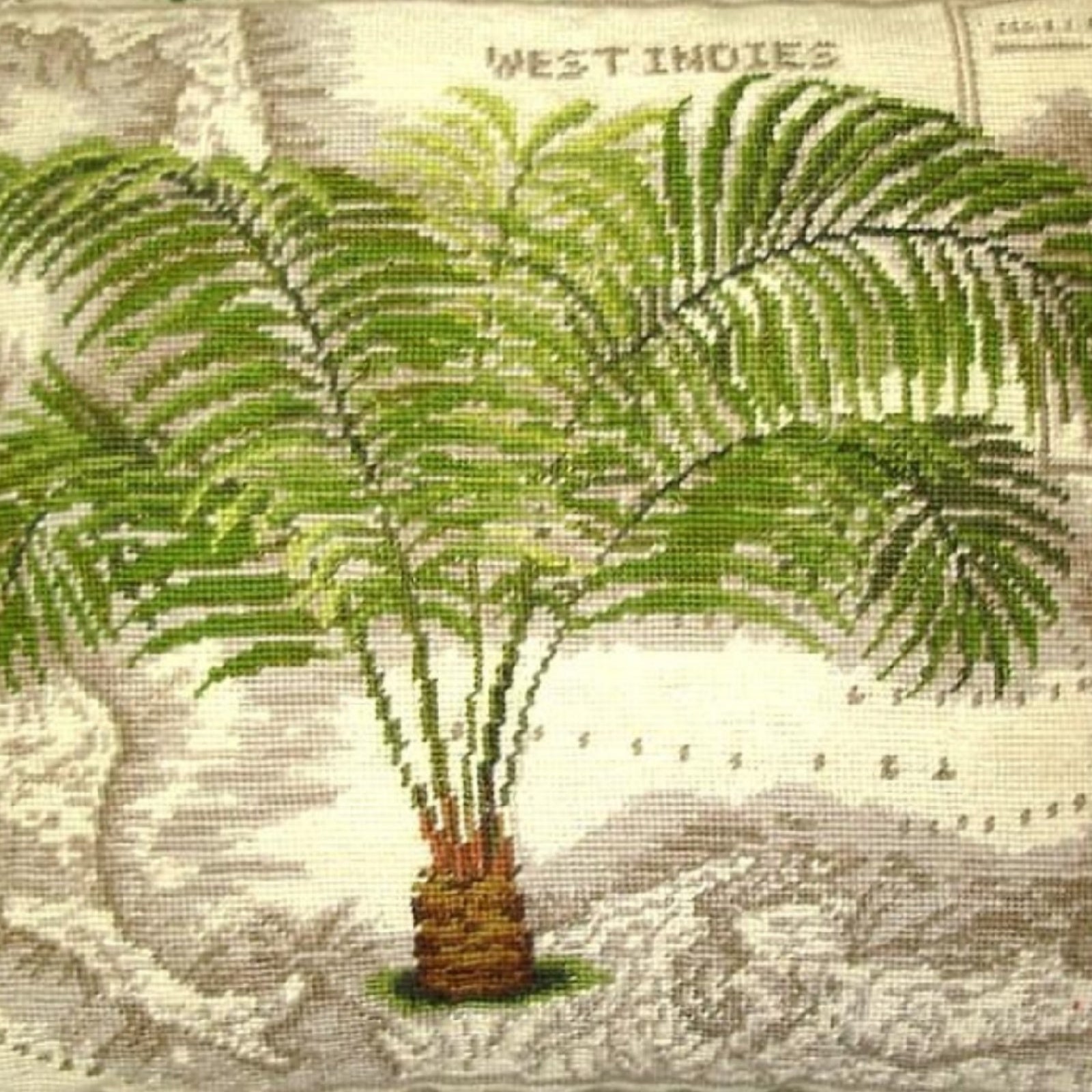 Handmade Wool Needlepoint Pillow Cover - Decorative Throw Cushion Cover - Vintage Floral Embroidery Design West Indies