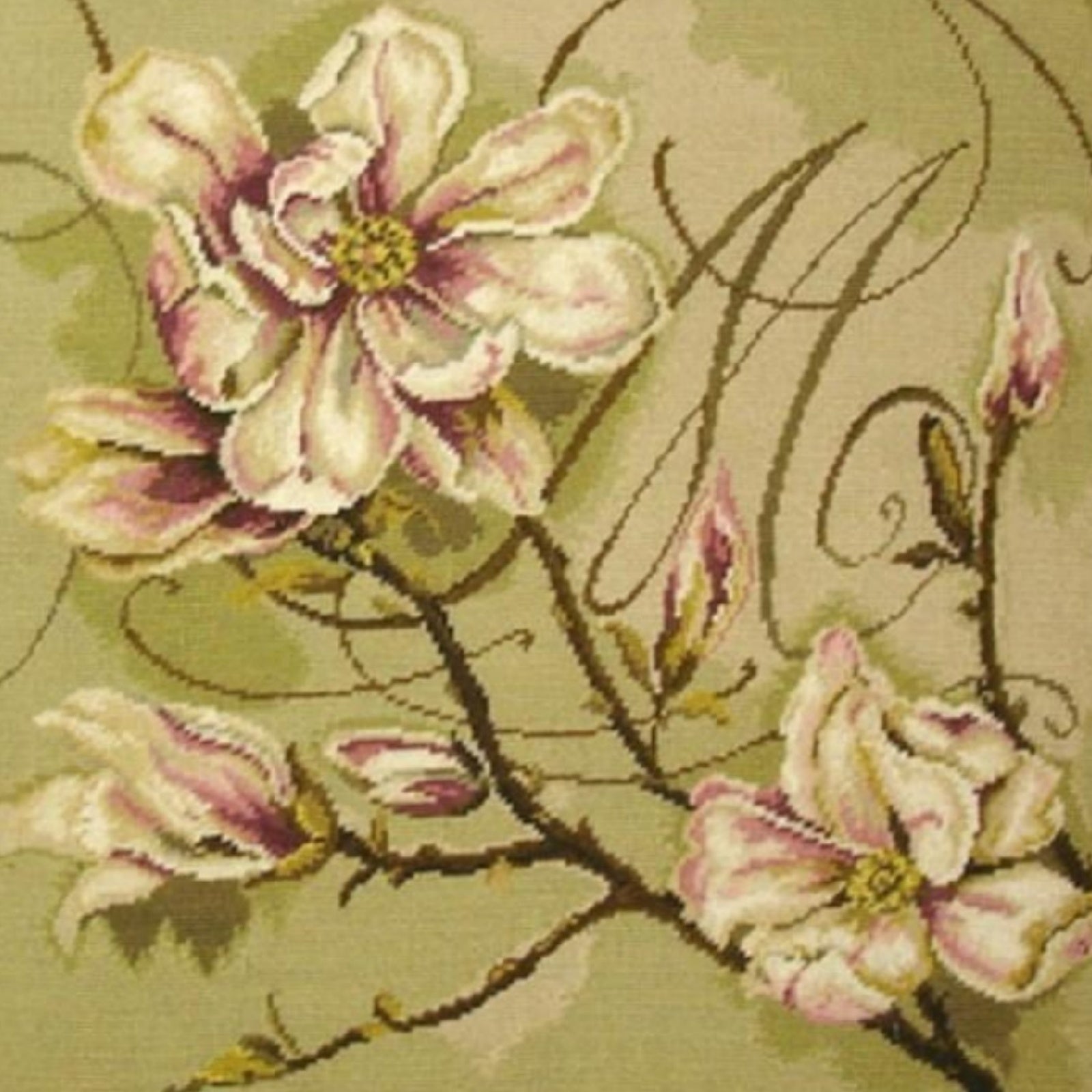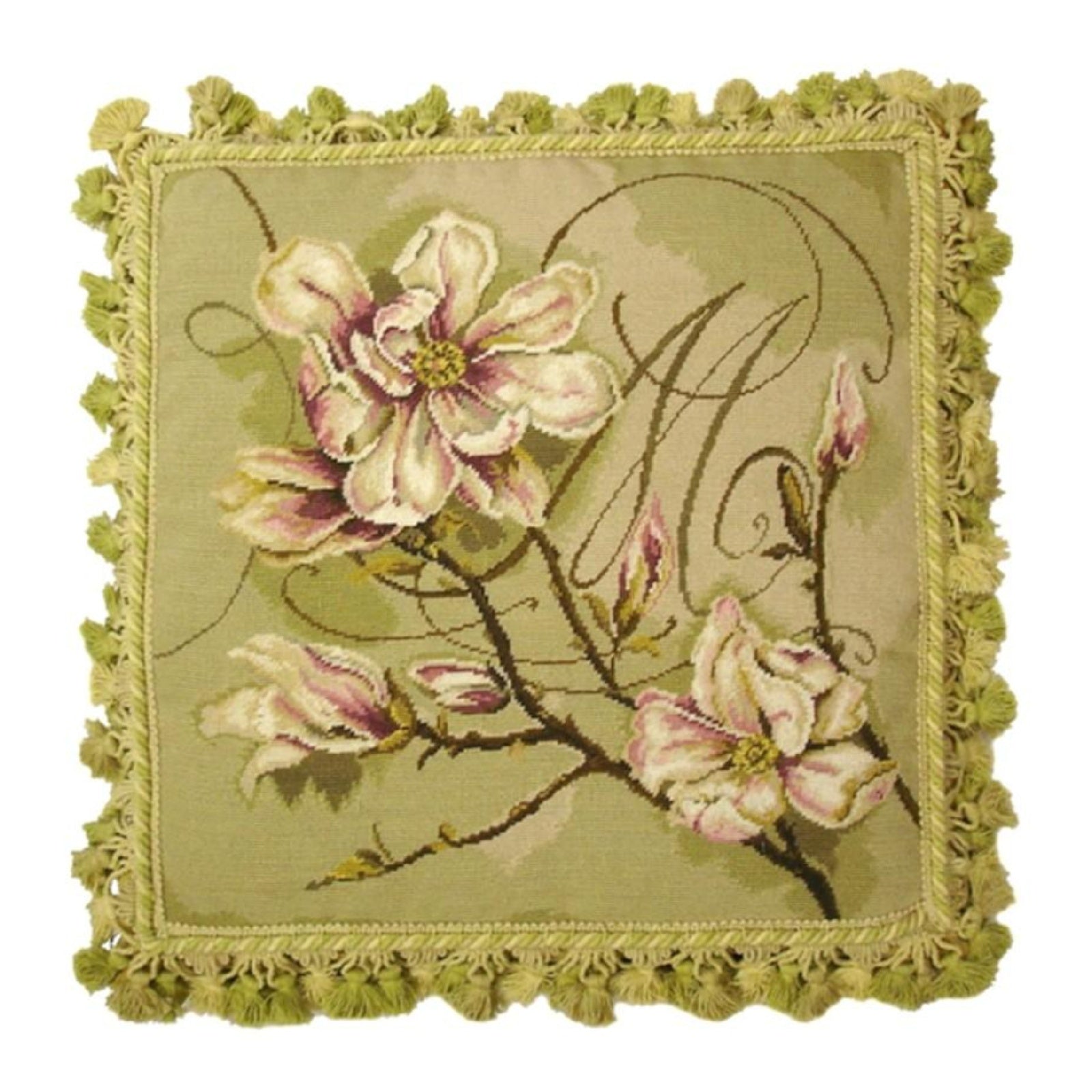 Handmade Wool Needlepoint Pillow Cover - Decorative Throw Cushion Cover - Vintage Floral Embroidery Design Kathryn White designMagnolia Trumeau with tassel