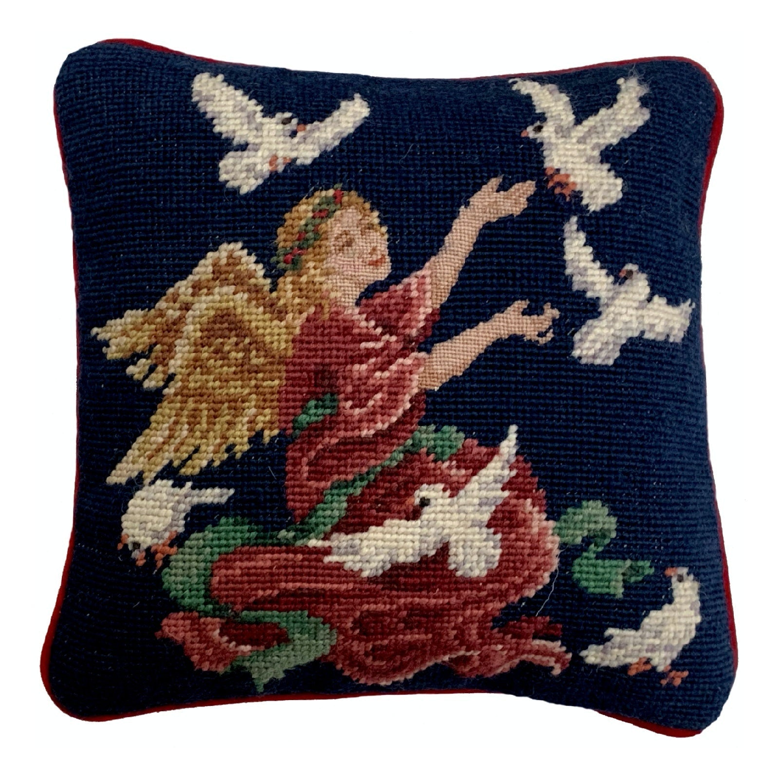 Handmade Wool Needlepoint Pillow Cover - Decorative Throw Cushion Cover - Vintage Floral Embroidery Design Finest Petipoint Angle