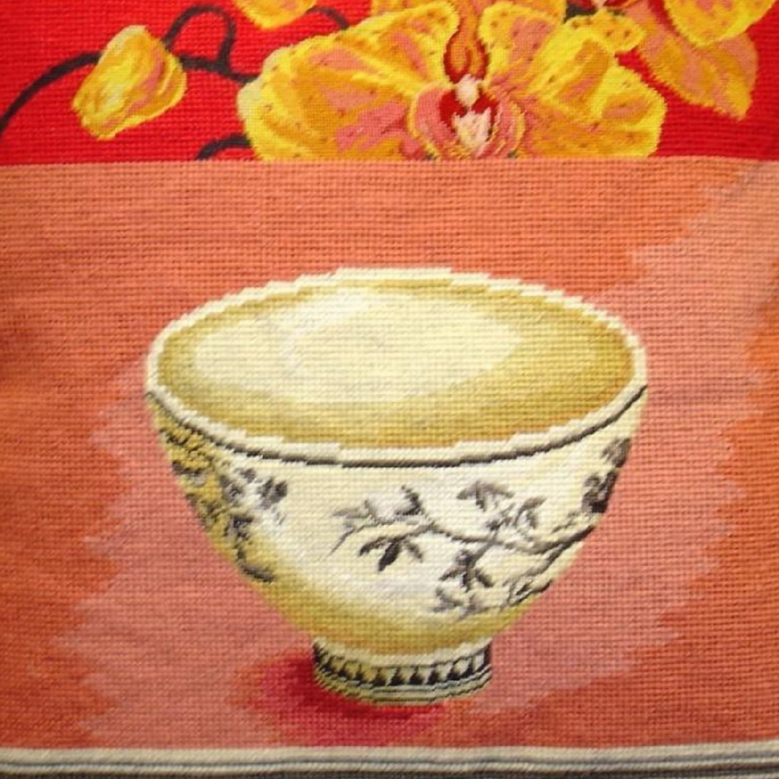 Handmade Wool Needlepoint Pillow Cover - Decorative Throw Cushion Cover - Vintage Floral Embroidery Design Kathryn White Design N