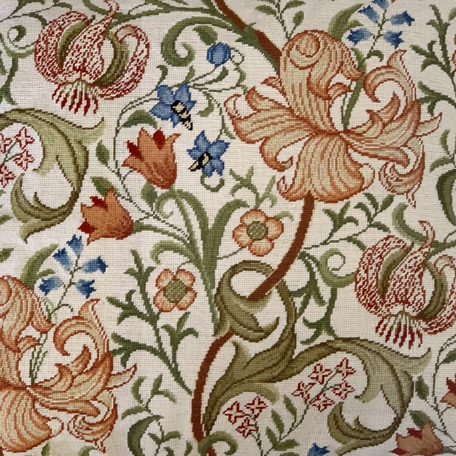 Handmade Wool Needlepoint Pillow Cover - Decorative Throw Cushion Cover - Vintage Floral Embroidery Design floral in orange pink green blue with tassels A