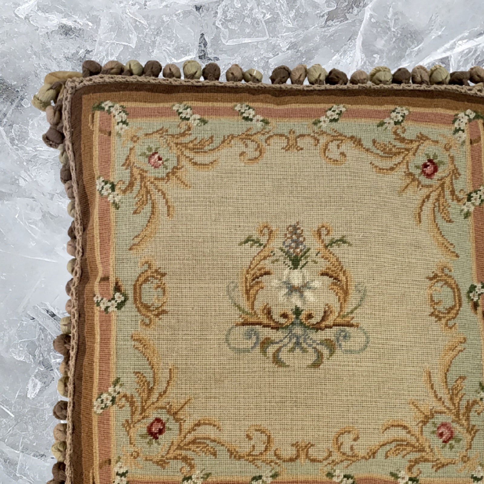 Handmade Wool Needlepoint Pillow Cover - Decorative Throw Cushion Cover - Vintage Floral Embroidery Design yellow harp floral with 3 color tassel