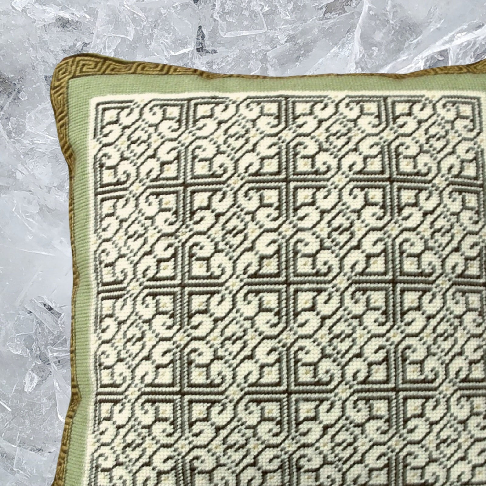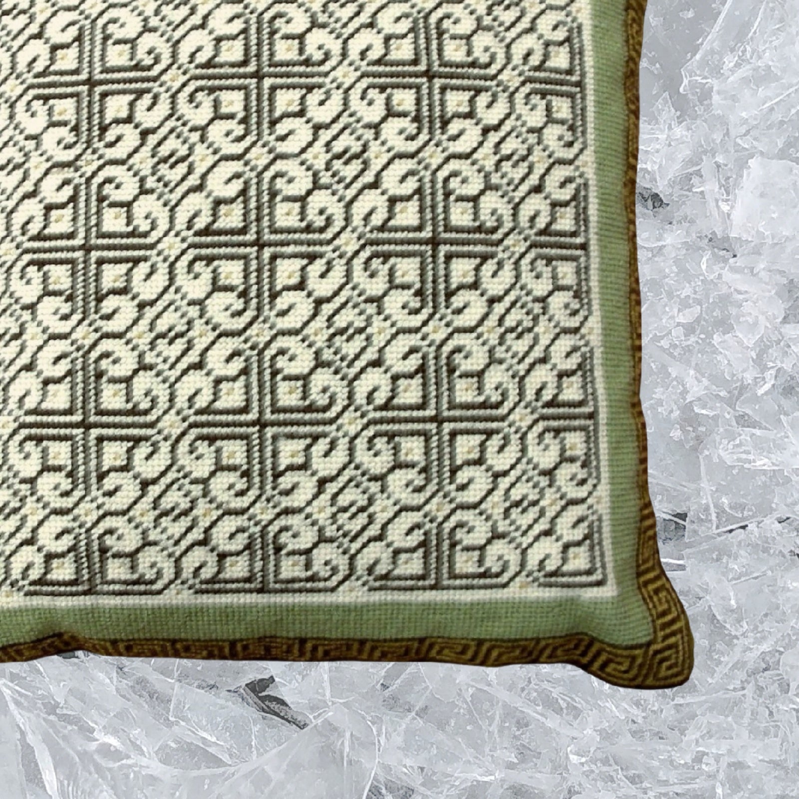 Handmade Wool Needlepoint Pillow Cover - Decorative Throw Cushion Cover - Vintage Floral Embroidery Design tapestry heartscroll multi design green/brown