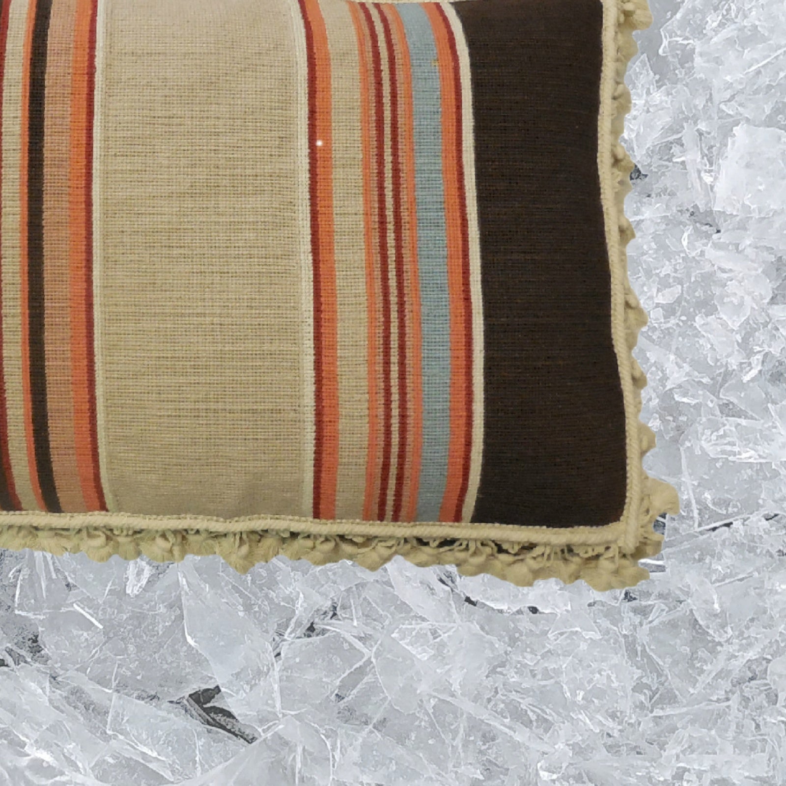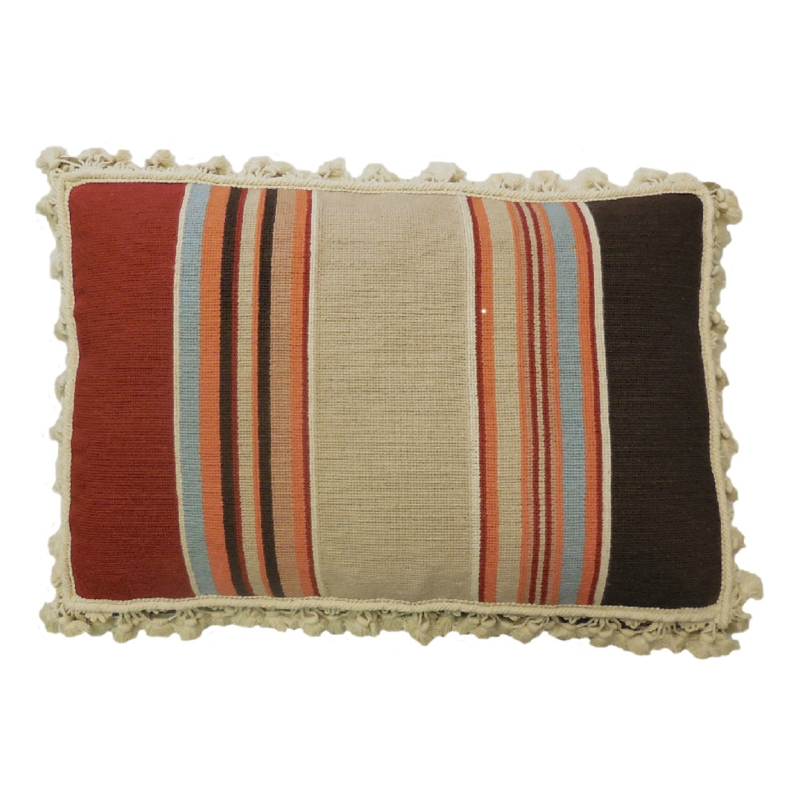 Handmade Wool Needlepoint Pillow Cover - Decorative Throw Cushion Cover - Vintage Floral Embroidery Design strips in red, blue, brown, sand, orange with tassels