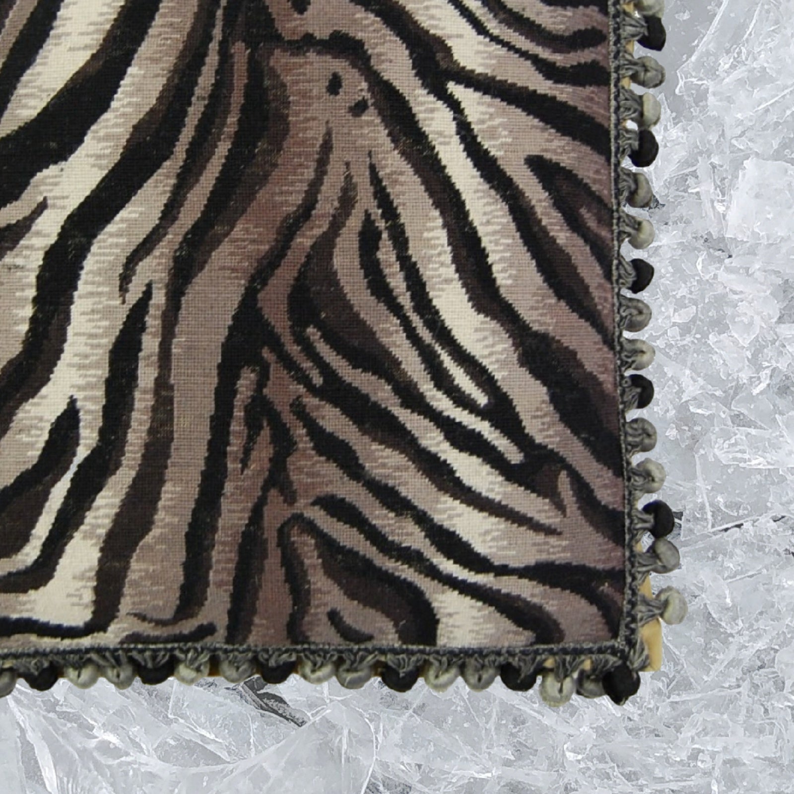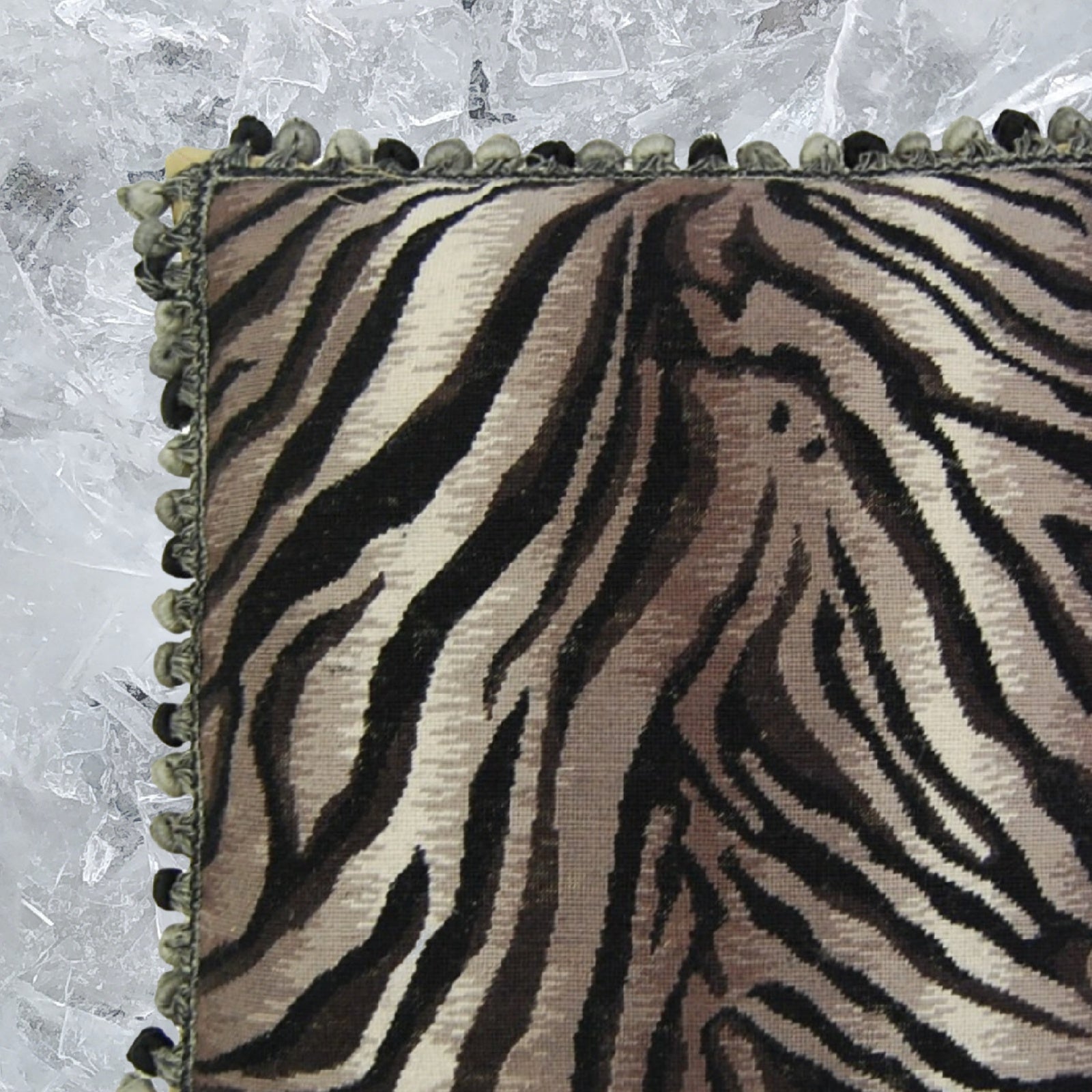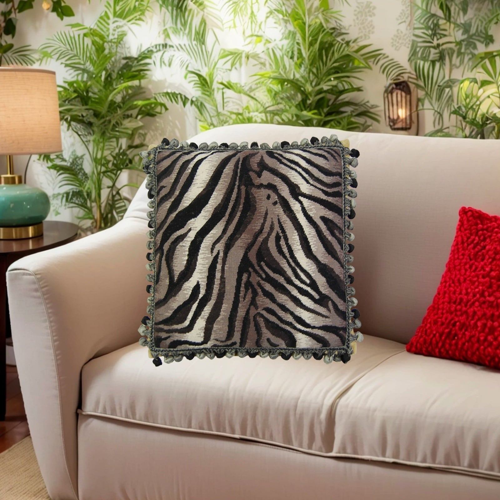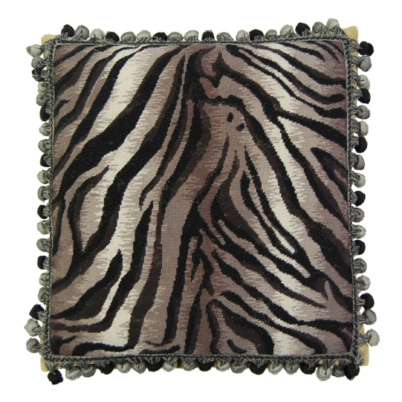 Handmade Wool Needlepoint Pillow Cover - Decorative Throw Cushion Cover - Vintage Floral Embroidery Design Zabera animal print with bush tassel