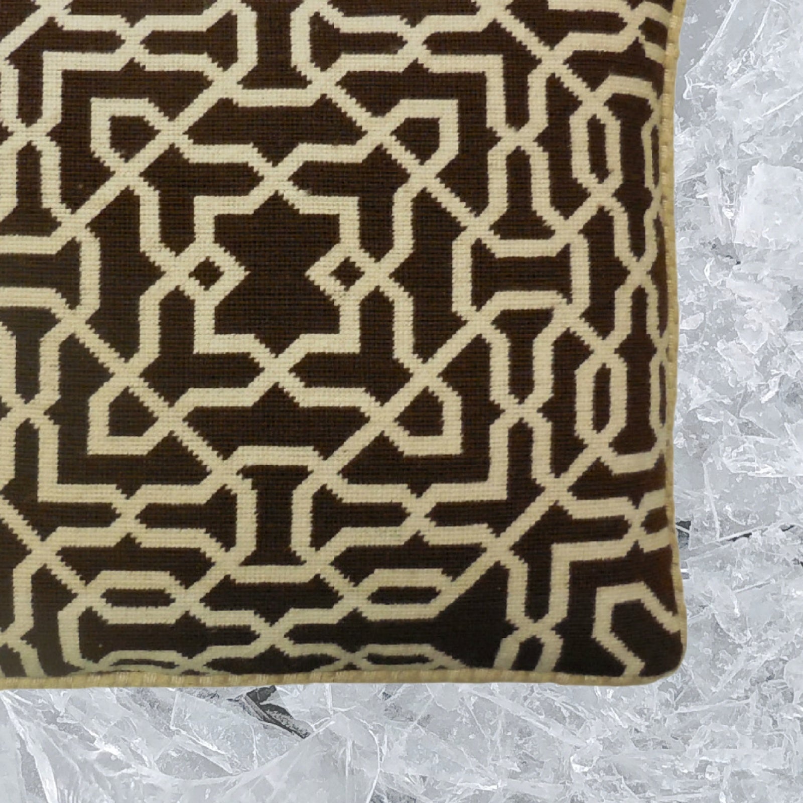 Handmade Wool Needlepoint Pillow Cover - Decorative Throw Cushion Cover - Vintage Floral Embroidery Design brown small window designs checker cording