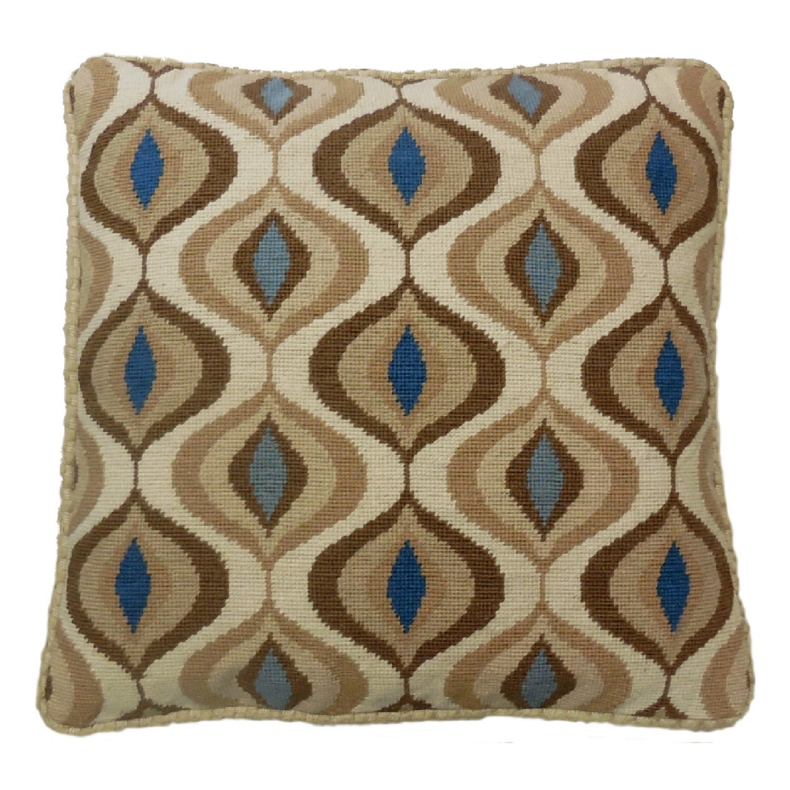 Handmade Wool Needlepoint Pillow Cover - Decorative Throw Cushion Cover - Vintage Floral Embroidery Design brown water drop pattern with checker cording