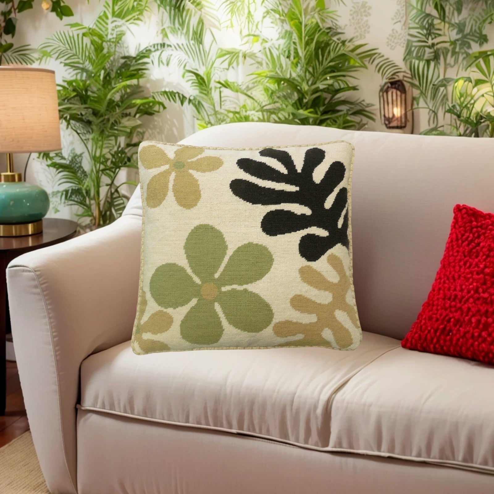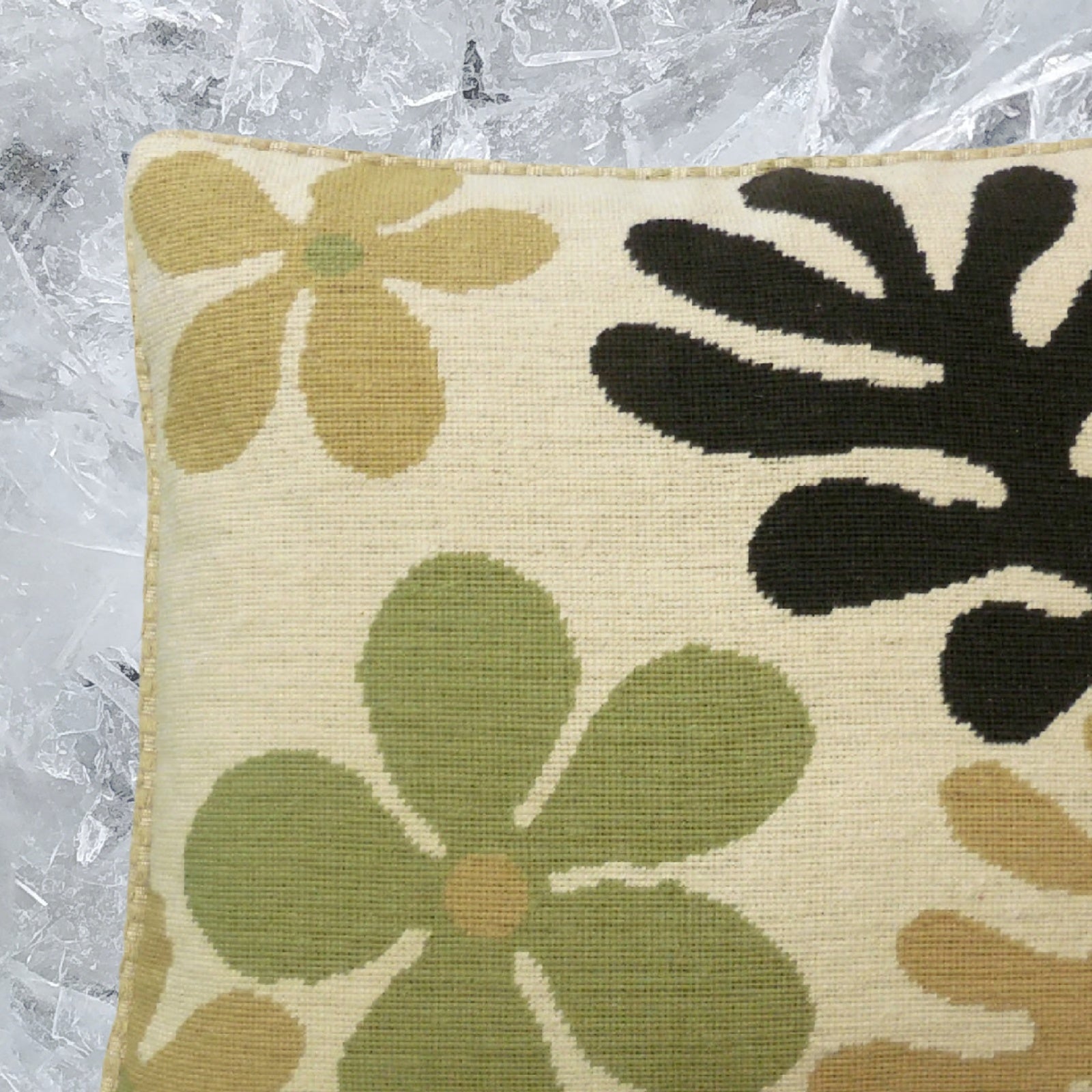 Handmade Wool Needlepoint Pillow Cover - Decorative Throw Cushion Cover - Vintage Floral Embroidery Design abstract flower checker cording I