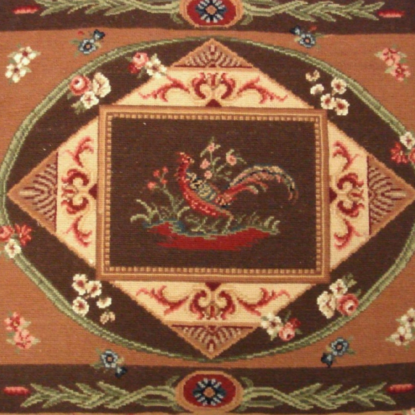 Handmade Wool Needlepoint Pillow Cover - Decorative Throw Cushion Cover - Vintage Floral Embroidery Design pheasant center with tassels