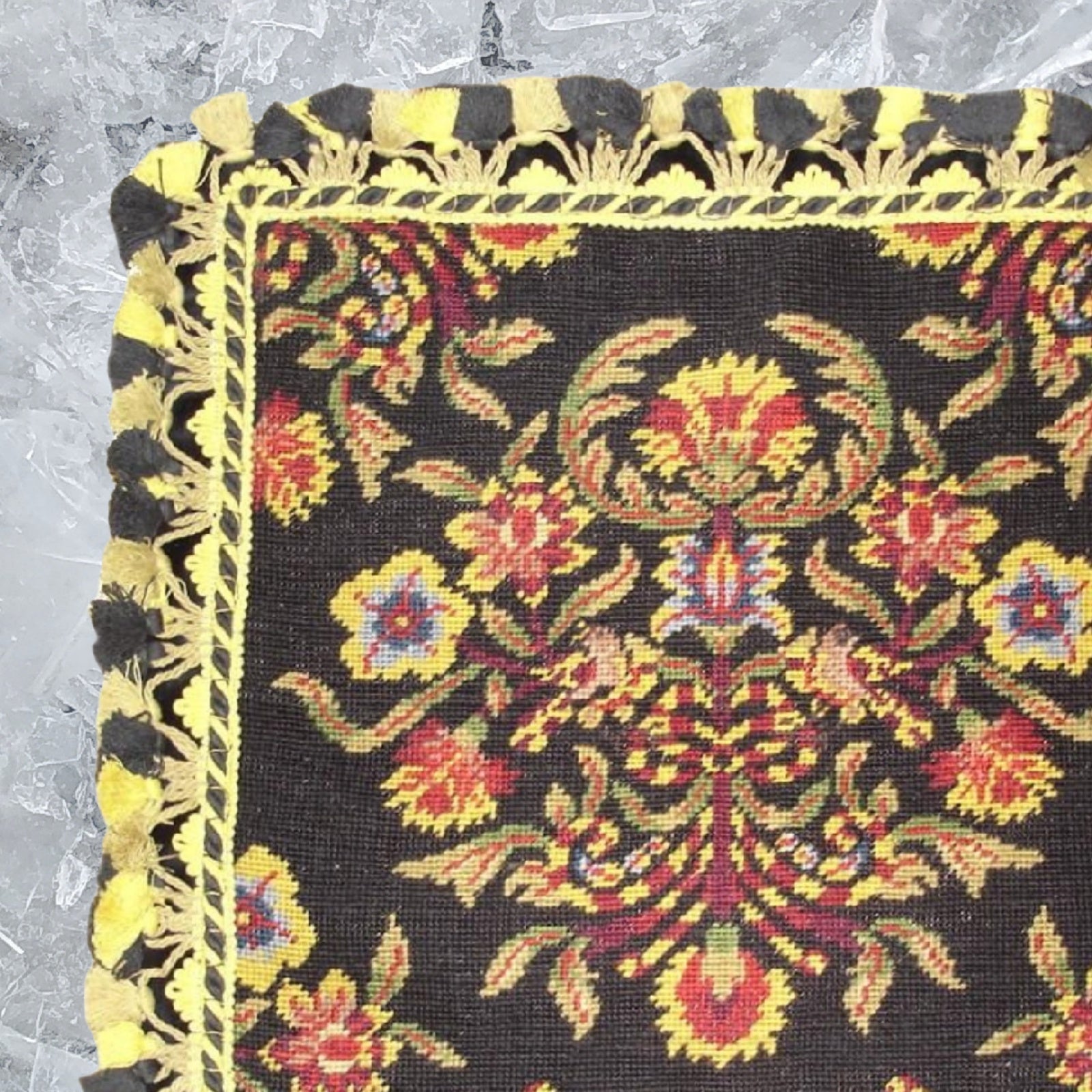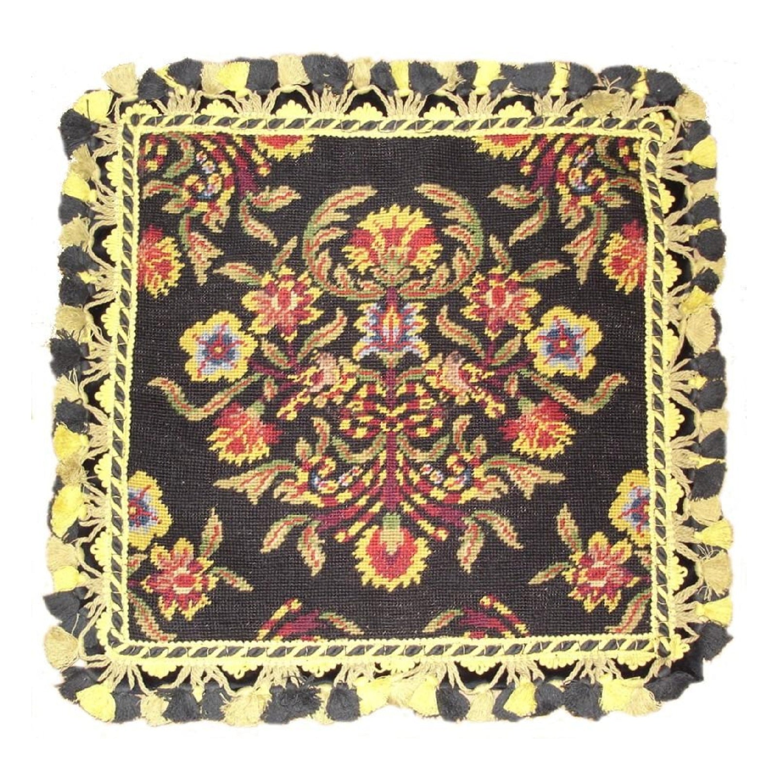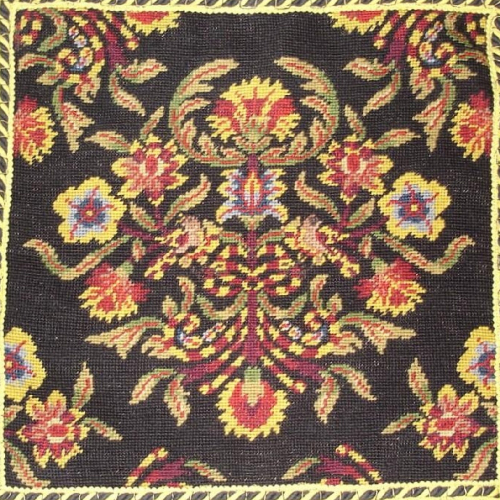 Handmade Wool Needlepoint Pillow Cover - Decorative Throw Cushion Cover - Vintage Floral Embroidery Design William Morris design black background 2 color tassel