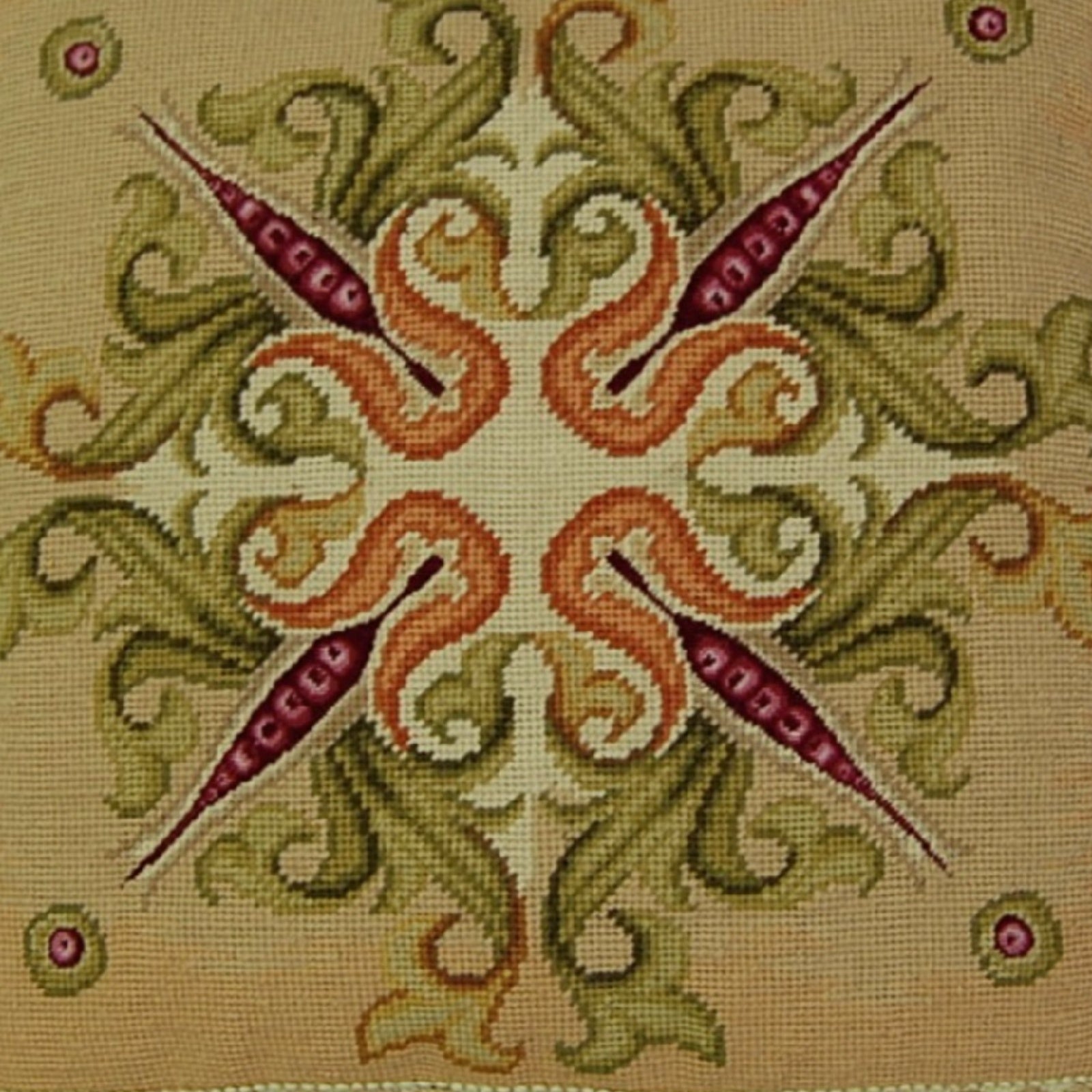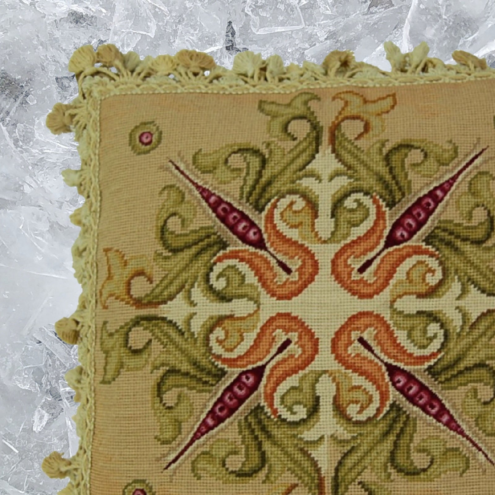 Handmade Wool Needlepoint Pillow Cover - Decorative Throw Cushion Cover - Vintage Floral Embroidery Design Corn blooming 3 with tassels