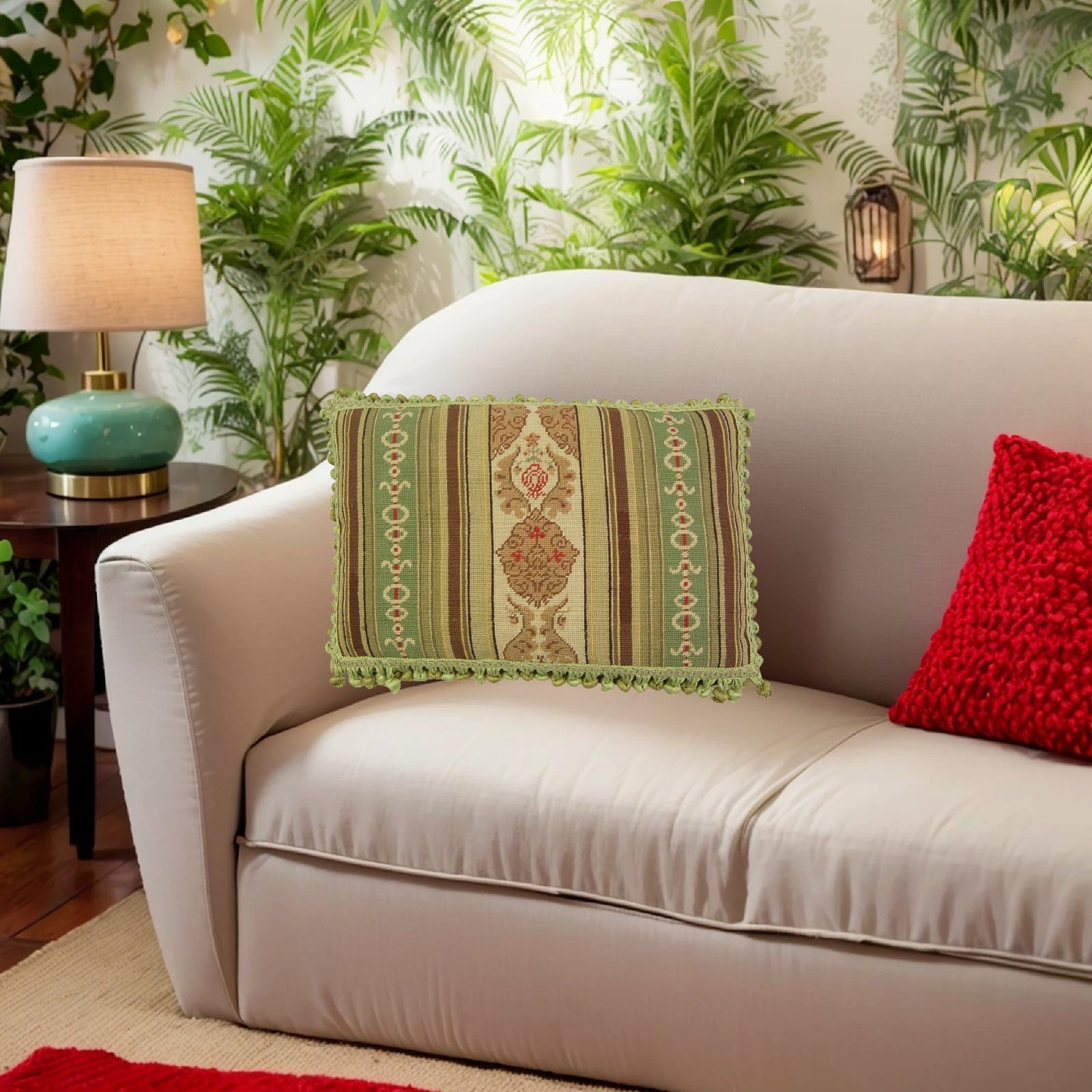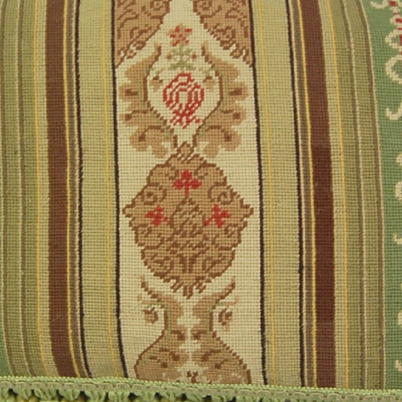 Handmade Wool Needlepoint Pillow Cover - Decorative Throw Cushion Cover - Vintage Floral Embroidery Design green/brown large patten in center with 3 color tassels