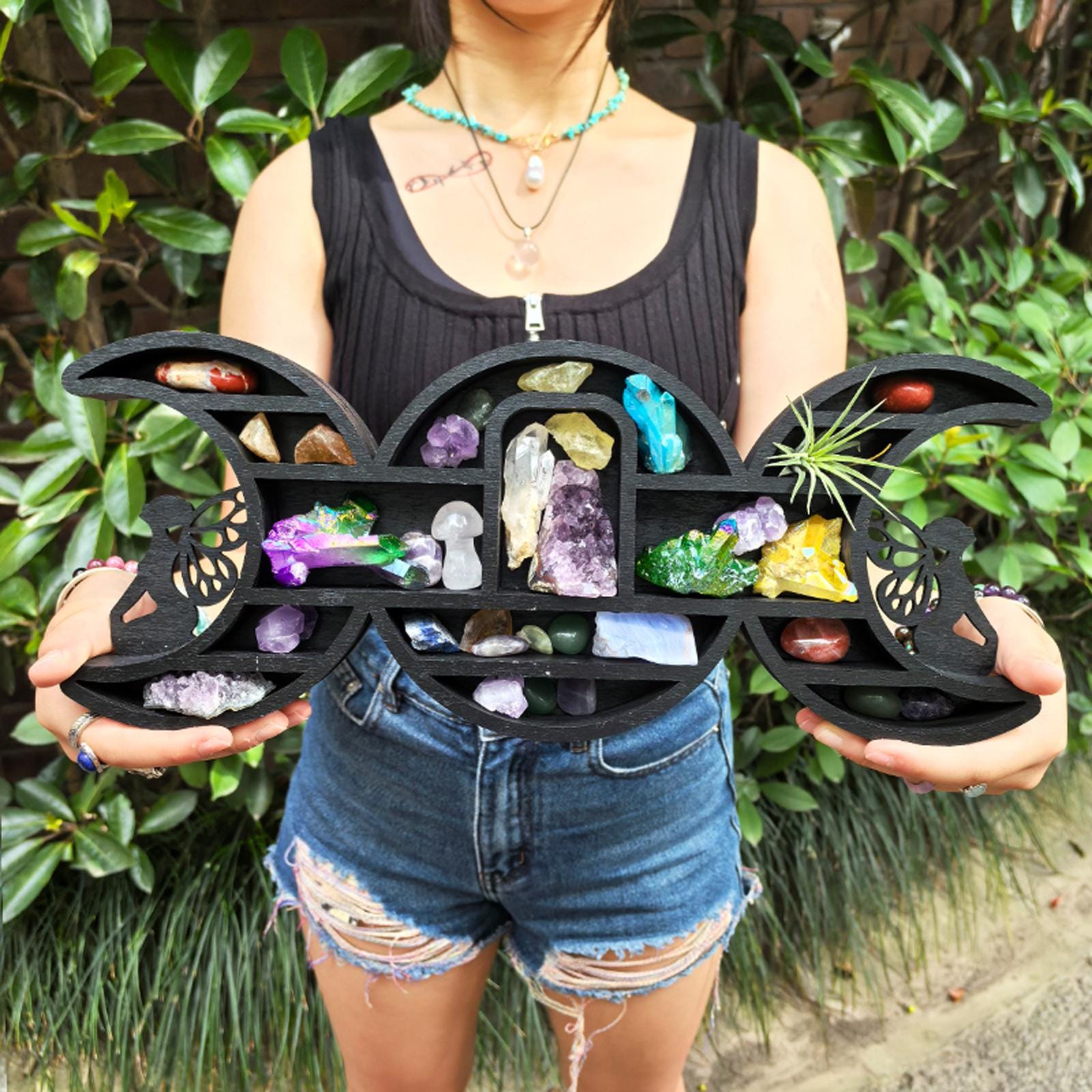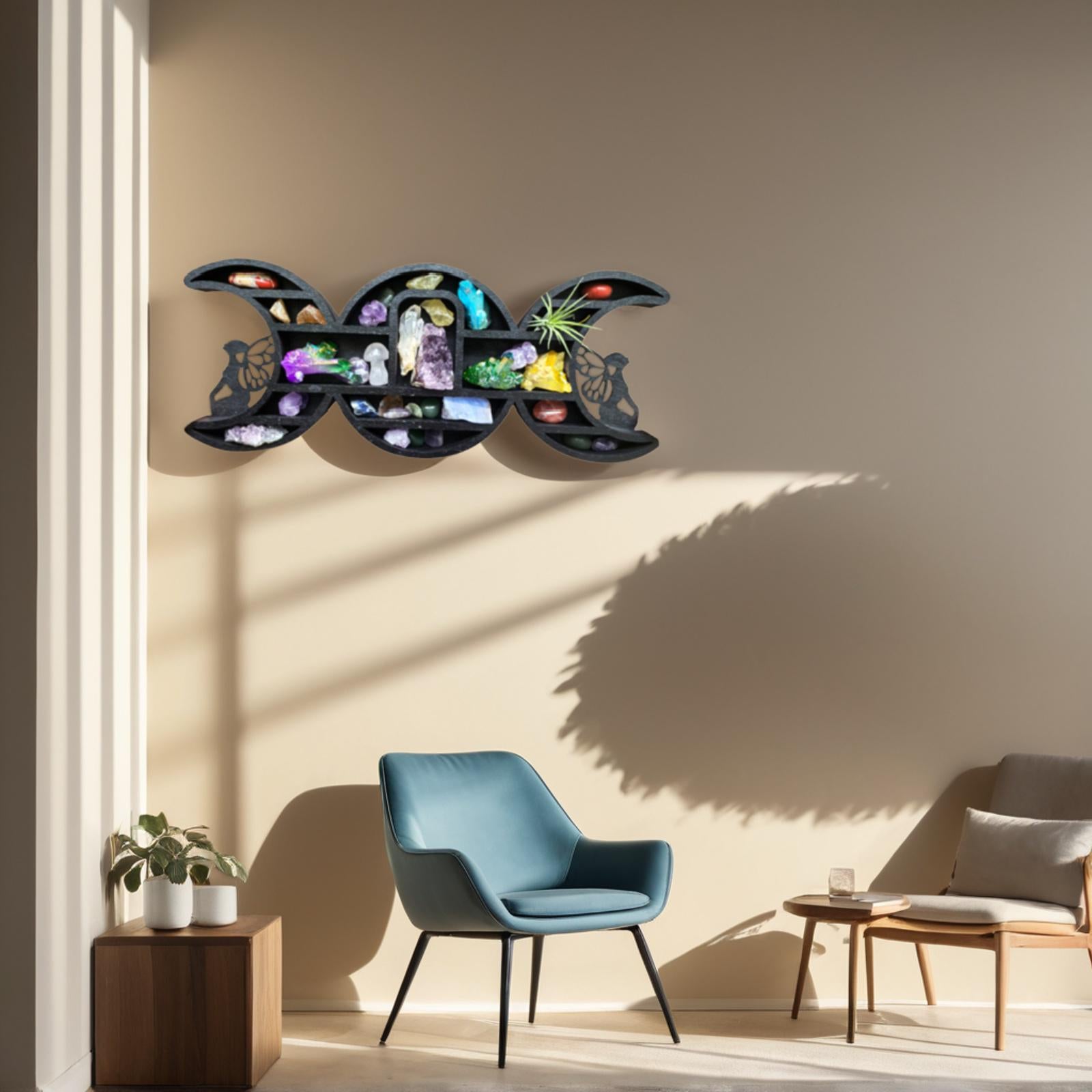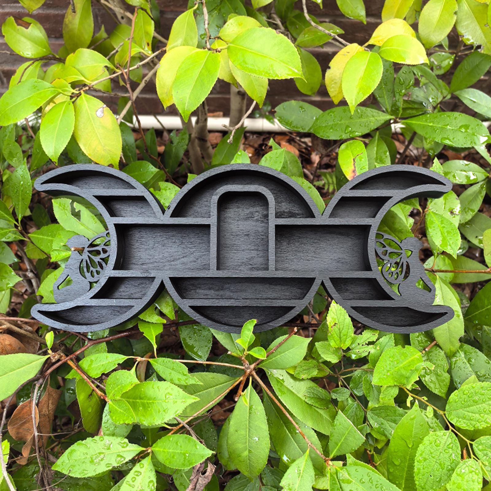 Triple Moon Shelf with Fairy Design - Crystal Display Shelf for Healing Crystals, Moon Decor, Witchy Room Decor, Spiritual Decor, Boho Decor